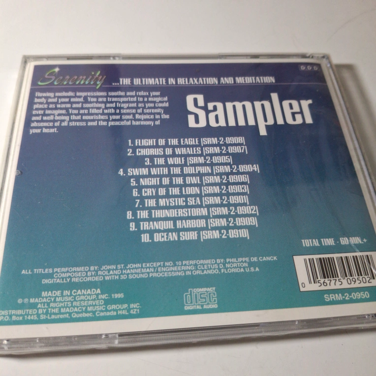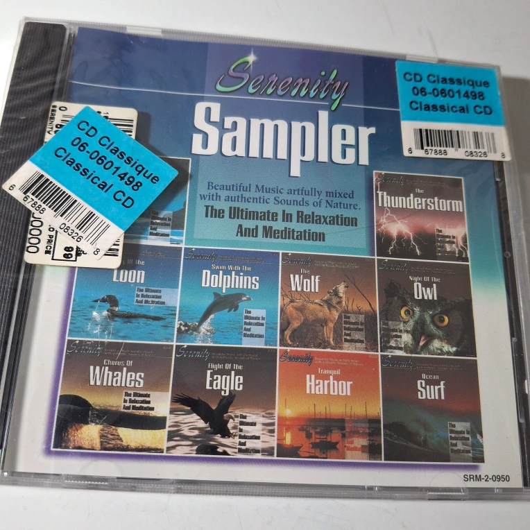 CD sampler featuring 10 tracks of nature sounds for relaxation and meditation. Includes tracks like "Flight of the Eagle", "Chorus of Whales", "Swim With the Dolphins", and more. New in plastic unopened. free. start the new year with sounds of nature. you can save this from becoming lost in trash.