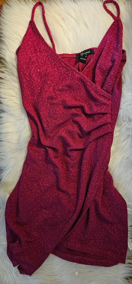 Perfect for New Year's Eve... Sparkly bodycon Fuchsia dress w/spaghetti straps, V-neck and wrap style. size M Never worn. Pick up only near ossington station.