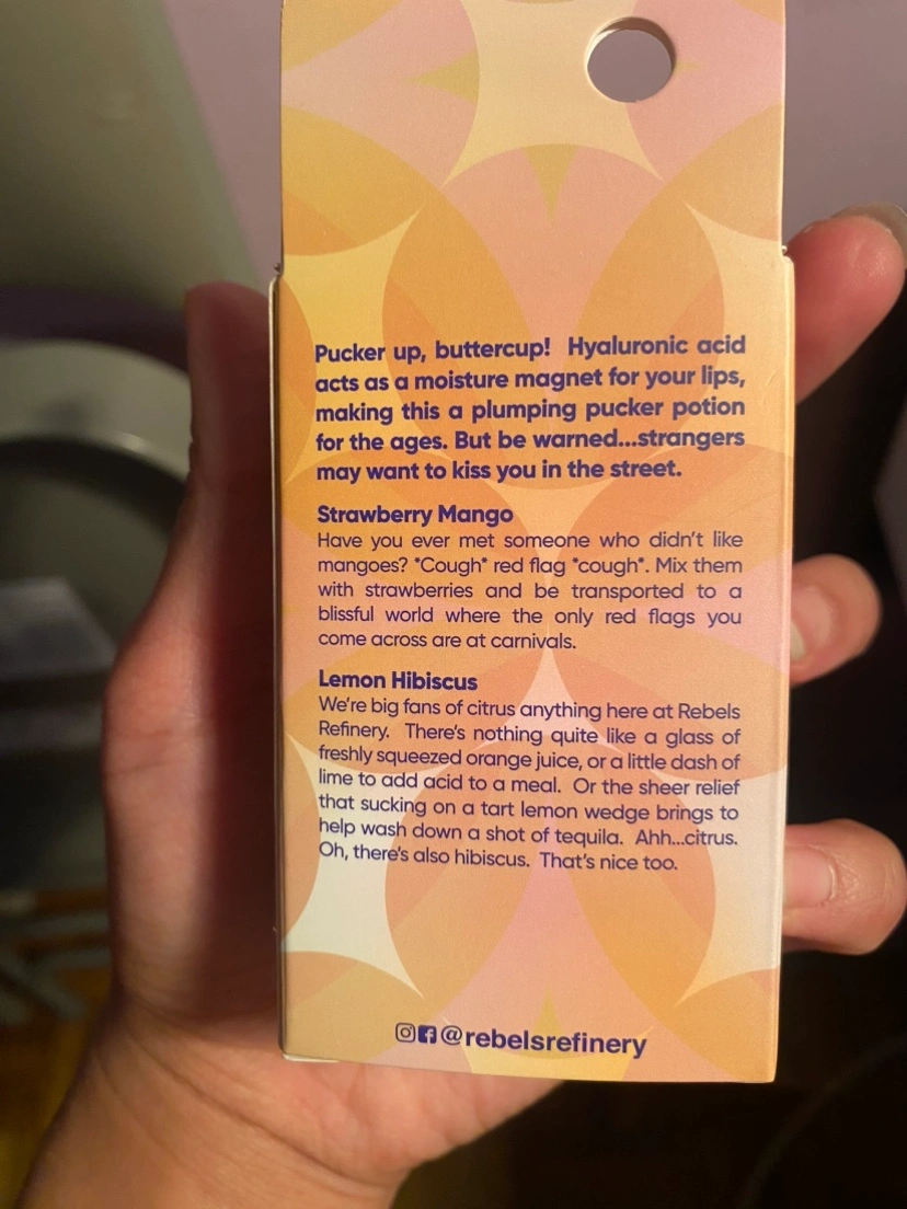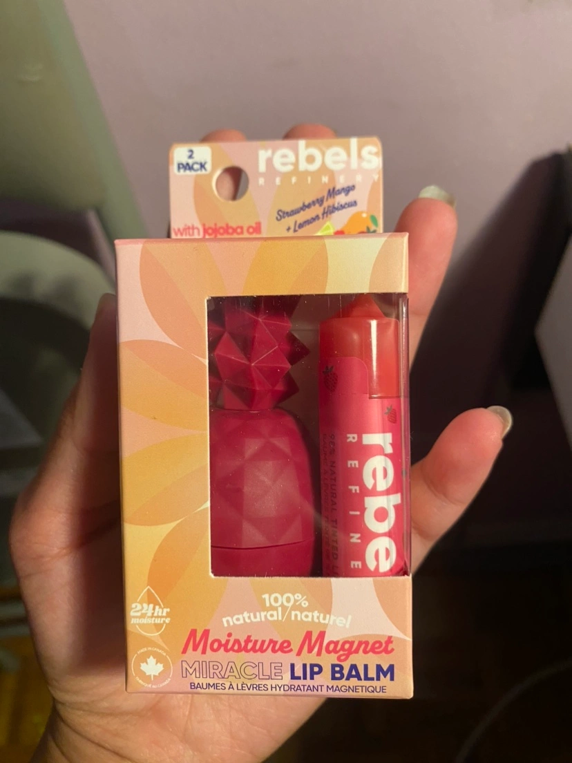 Two pack lip balm. Flavours include Strawberry Mango and Lemon Hibiscus. Contains jojoba oil never used or open