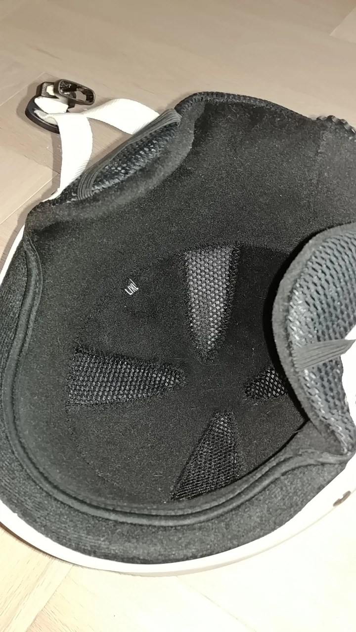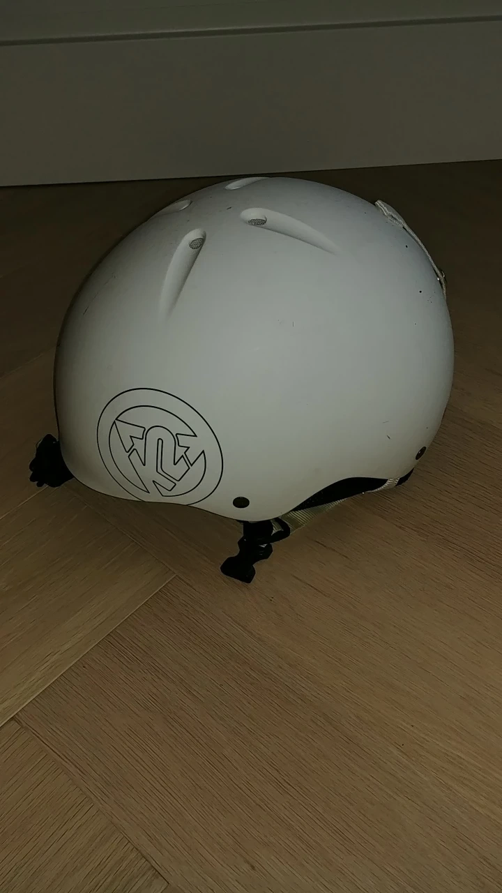White ski helmet with black accents. Adjustable straps and a comfortable liner. Mens size L/XL.
