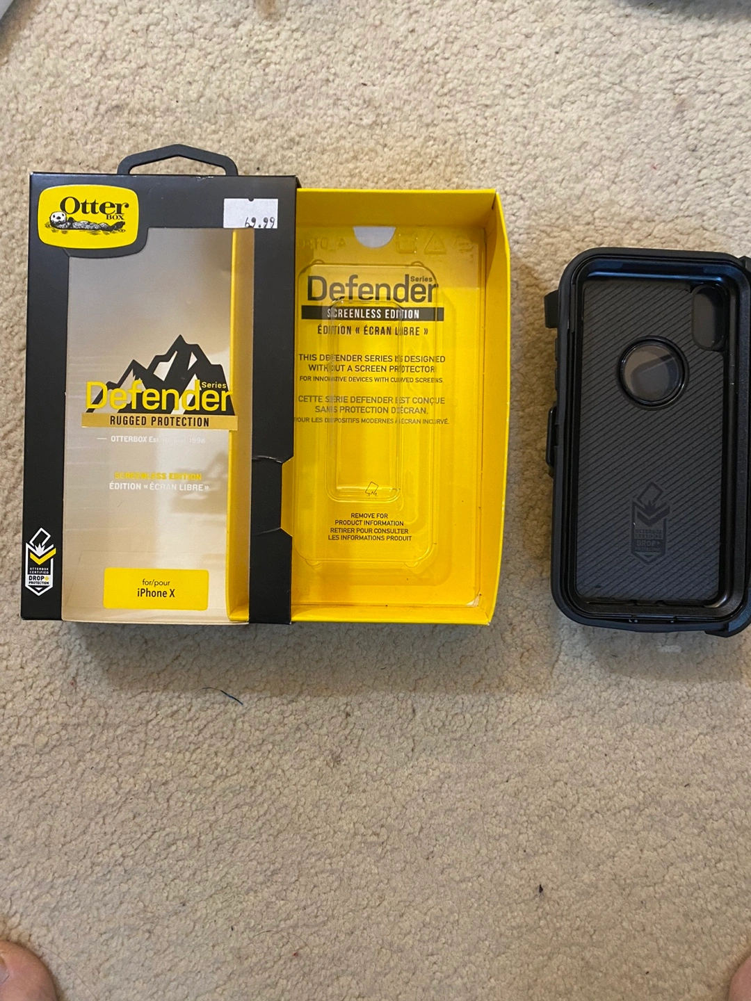 Giving away a brand black case and built-in screen protector for someone who still uses an iPhone X .