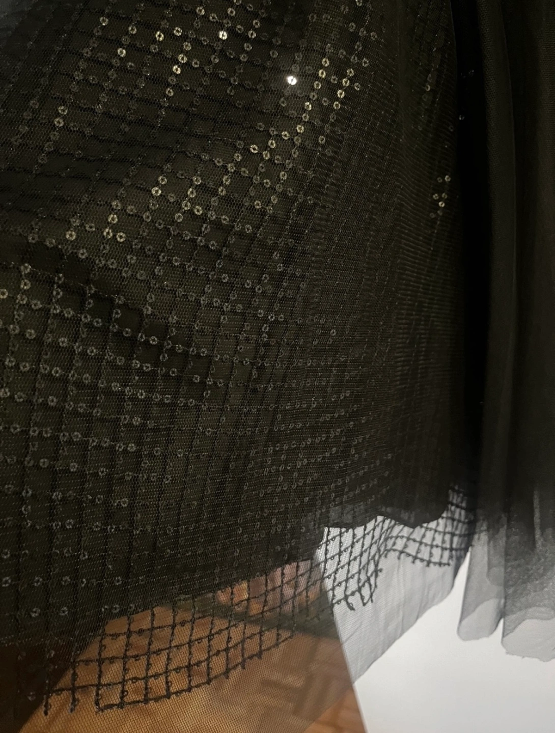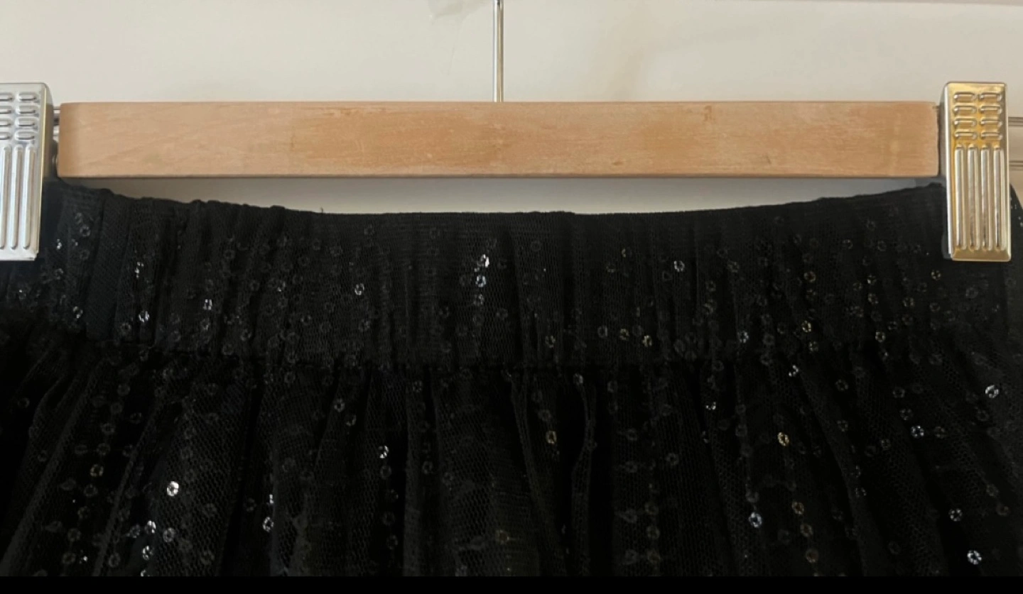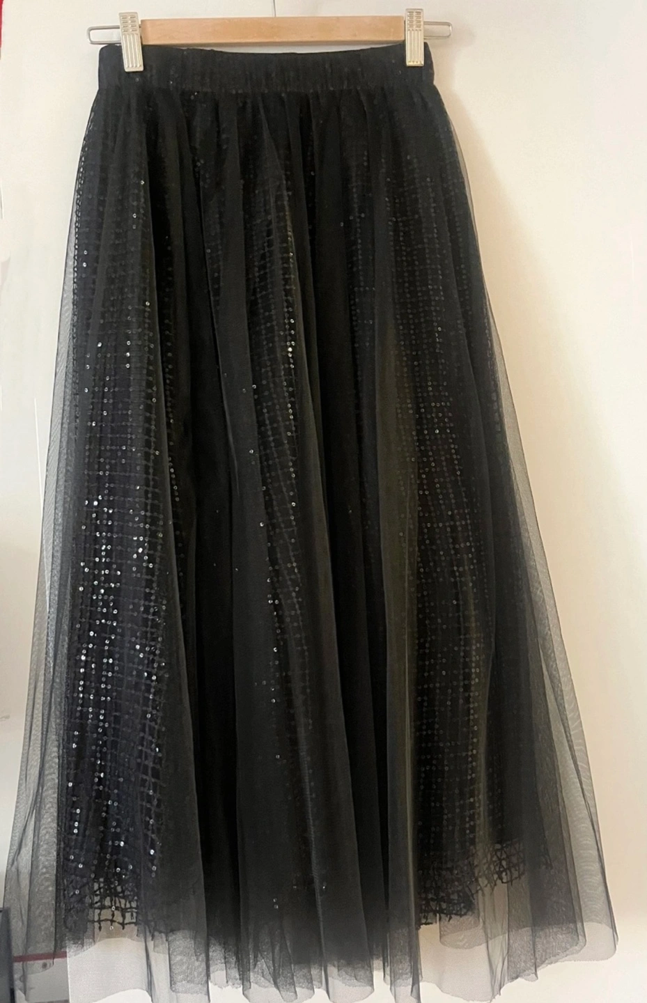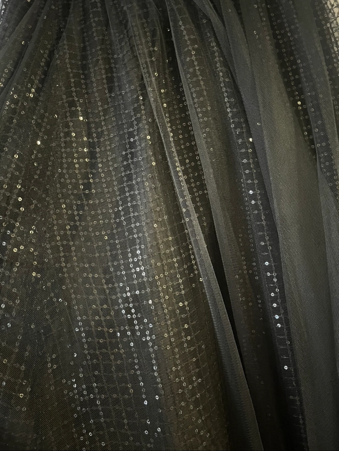 Black tulle skirt with sequins. Elastic waistband. Cash only