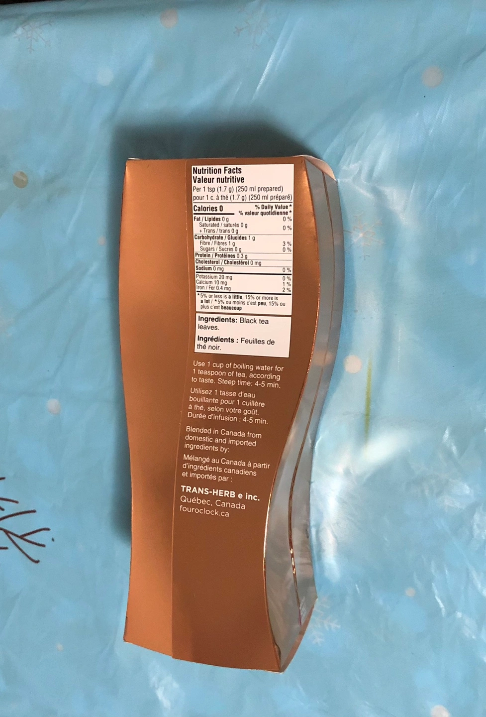 Got a Xmas gift A pack of sealed Black Tea, English Breakfast. 53g box with a reusable tea bag from pet/smoke free home. You can pickup at Christie station after 4:30pm during the week days Thanks