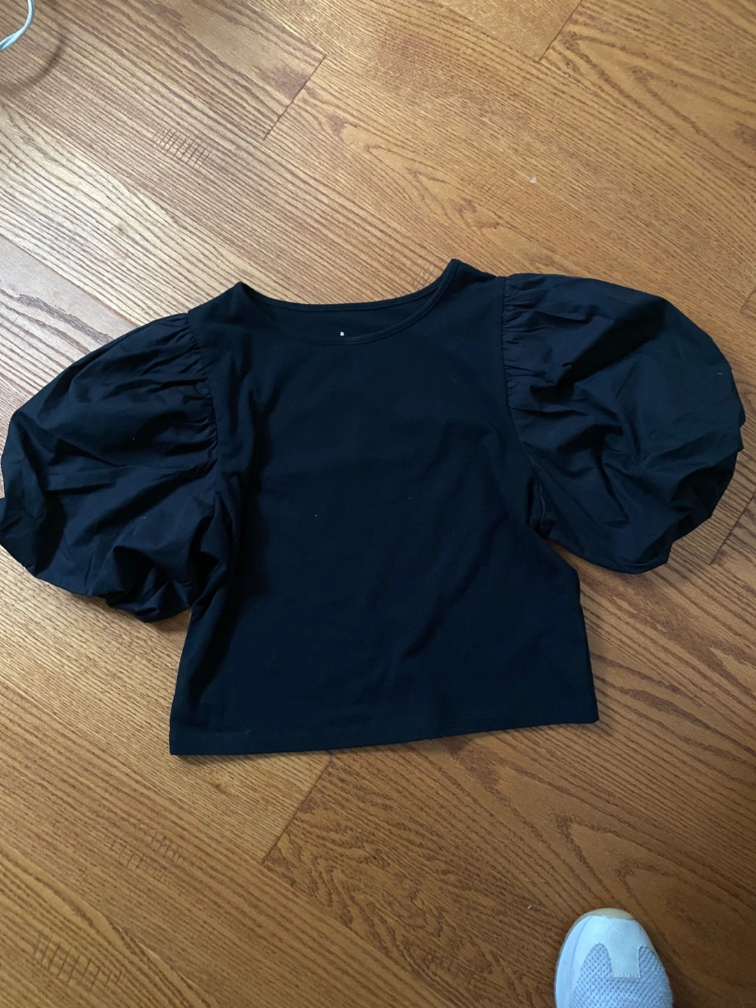 Black crop top with puff sleeves. Short sleeves. Size is Small