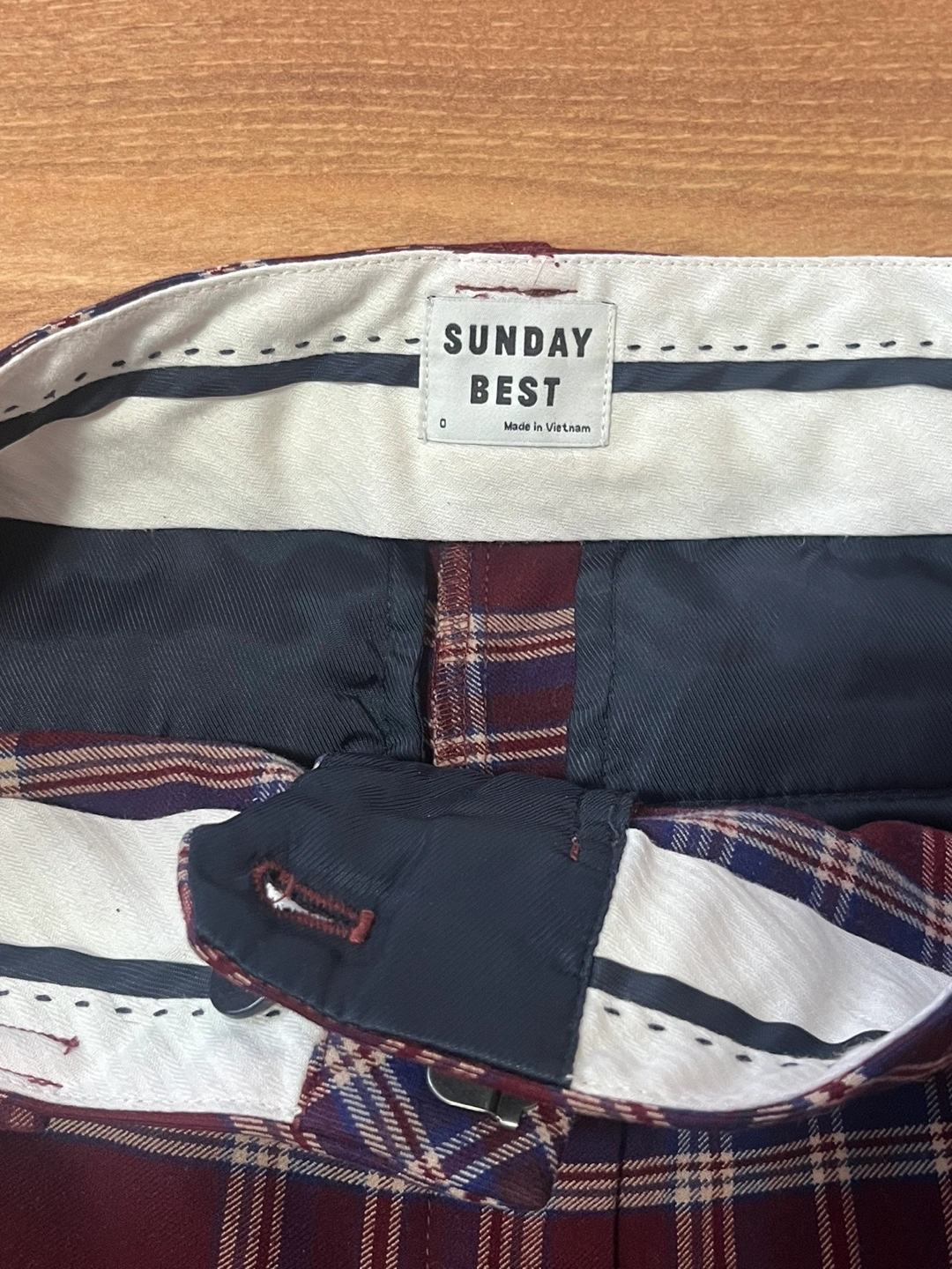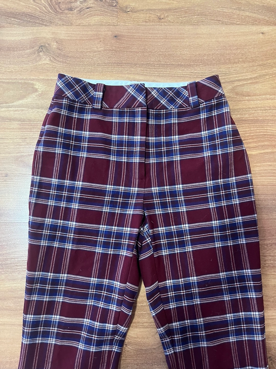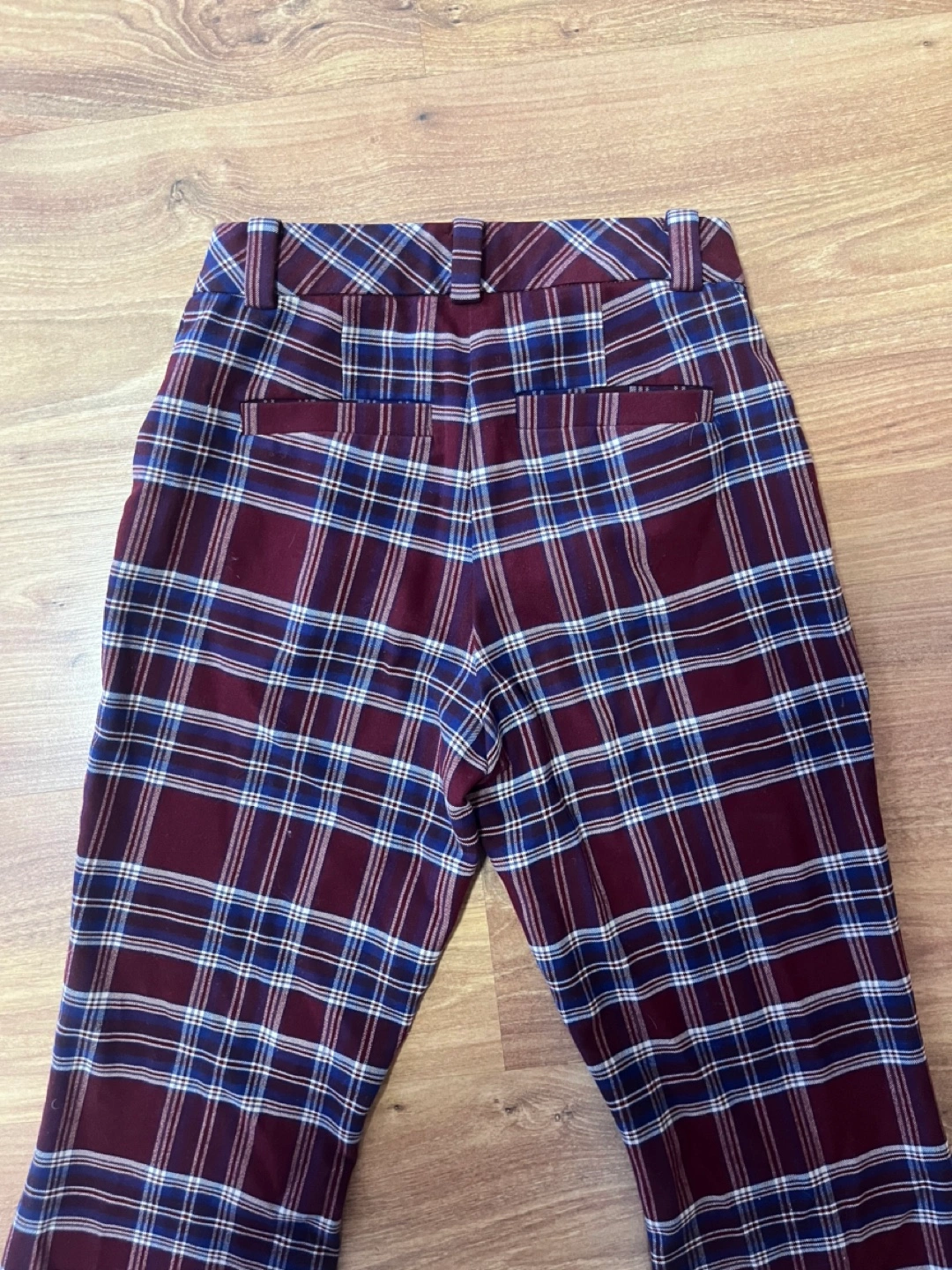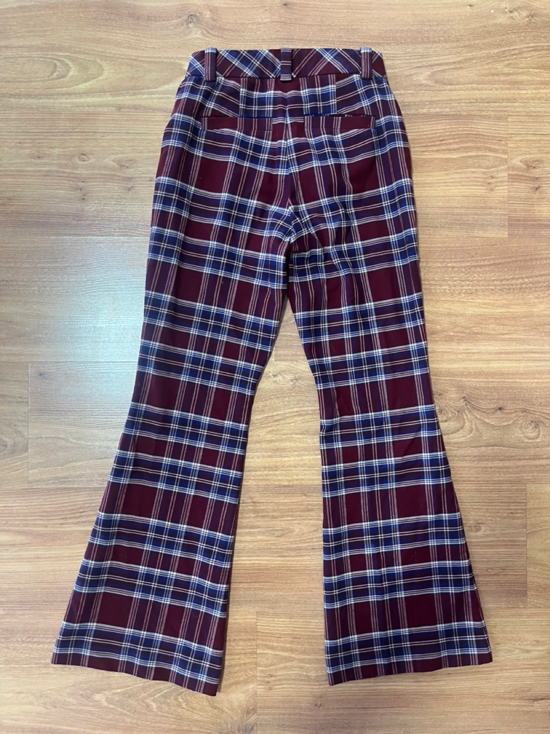 Red, blue, and white plaid/tartan pants with a flare leg. Bought from Aritzia brand “Sunday Best.”Looks great for both casual and professional outfits! No flaws.