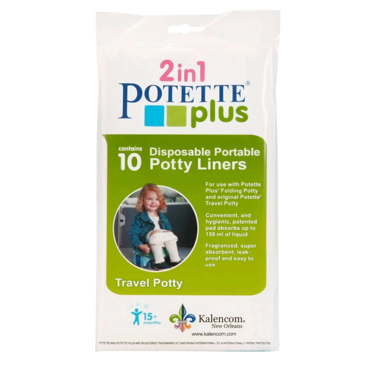 Disposable potty liners, 10 count, for use with Potette Plus and original Potette travel potty. Convenient, hygienic, and patented pad absorbs up to 150 ml of liquid. Fragranced, super absorbent, leak-proof and easy to use.