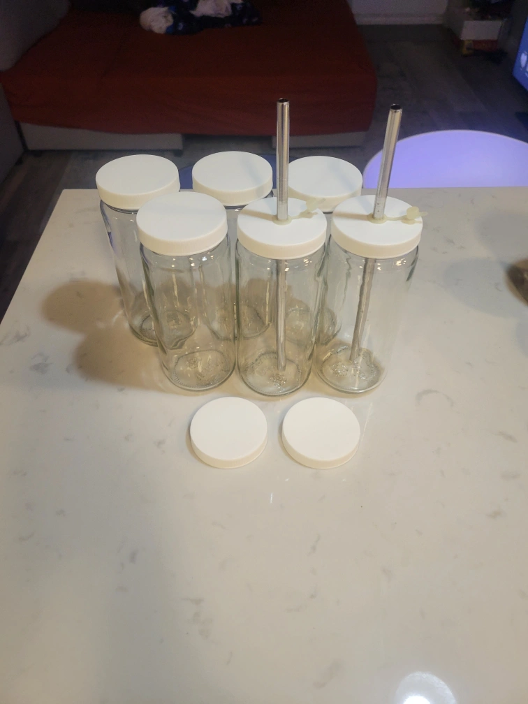 Set of 6 glass mason jars with lids and metal straws. Perfect for smoothies, shakes, or other beverages. Move out sale. Needs to be gone ASAP. Sold as they come. First come, first serve