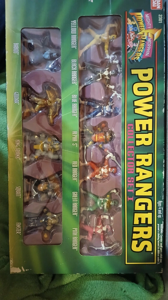 Power Rangers action figure set in original packaging. Includes all 6 Rangers and 6 villains. Ages 4 and up.