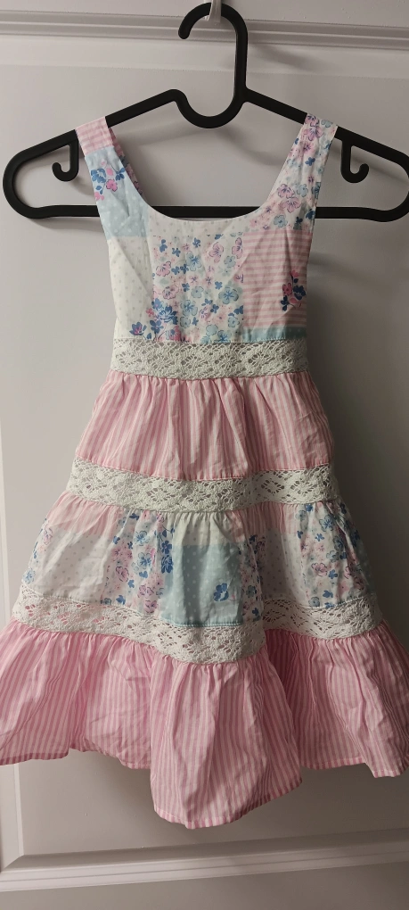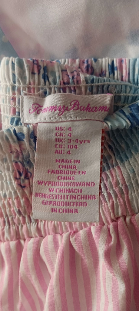 Pink and white striped dress with floral print and lace trim. Size 4. Tommy Bahama!!!
