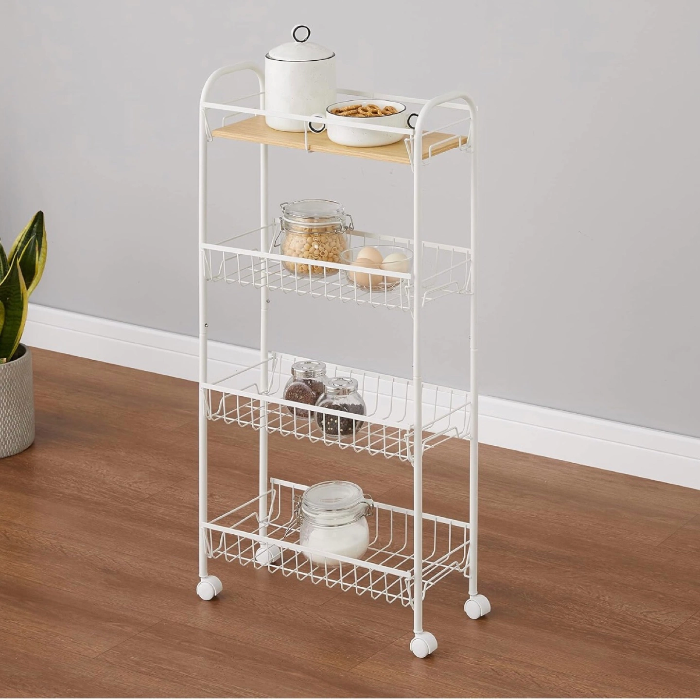 4-Tier Storage Trolley with Wooden Shelf ❤️ barand new in box ❤️ For more information, please copy the title to google ☺️ No meet,No delivery ,house Pick up only by Coquitlam. Thanks 😊 Cash only price firm ,💡 Not reply for lowball !! still up means available. First come, first serve.No Hold !!! No return or exchange for non defective item。 4-tier trolley for storage and transport in the home, office, school, or business Sturdy, durable steel construction with smooth painted finish; features 4 slim storage baskets with dense mesh bottoms for higher weight capacity and drainage Total cart size of 41.5 x 19 x 82.5 cm (W x D x H); features sturdy MDF board on the top tier Ideal for organising art, craft, painting, and school supplies, makeup, toiletries, stationery, etc Easy to maintain and assemble; includes all necessary tools