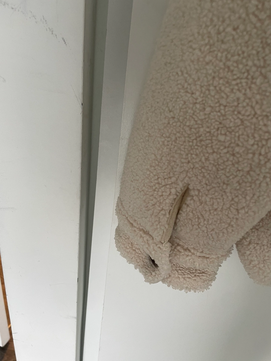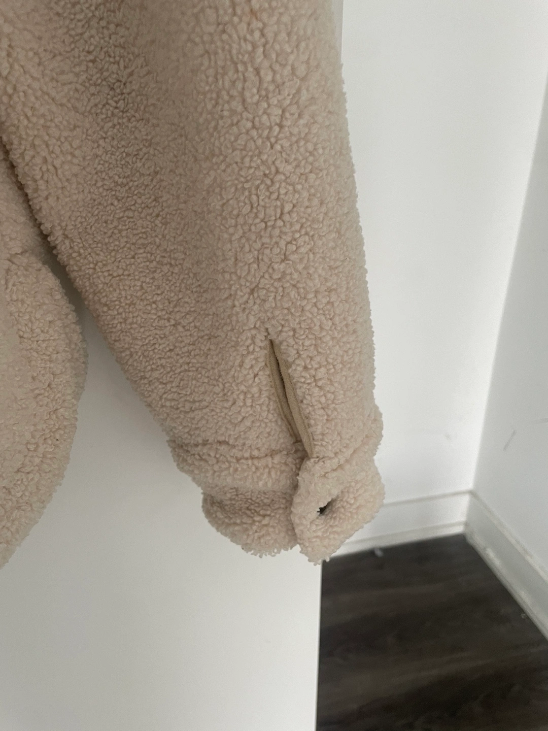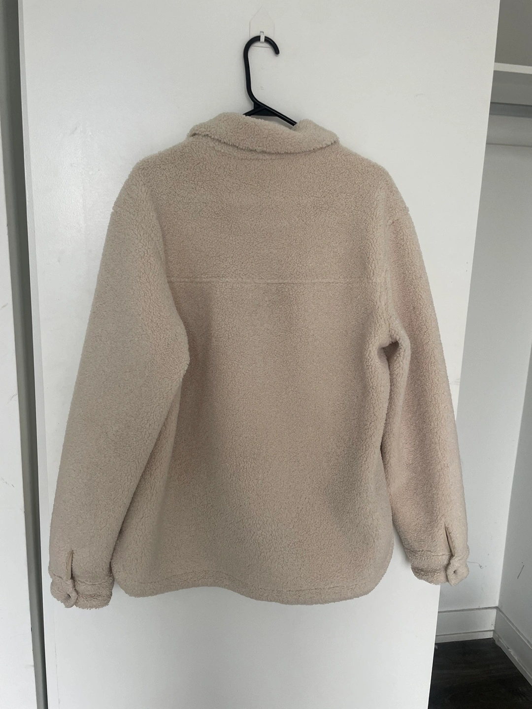 Cream coloured teddy fleece jacket. Button closure with two pockets. Retails for 90+ ! Only getting rid of it so cheap because of moving! Spare buttons still on