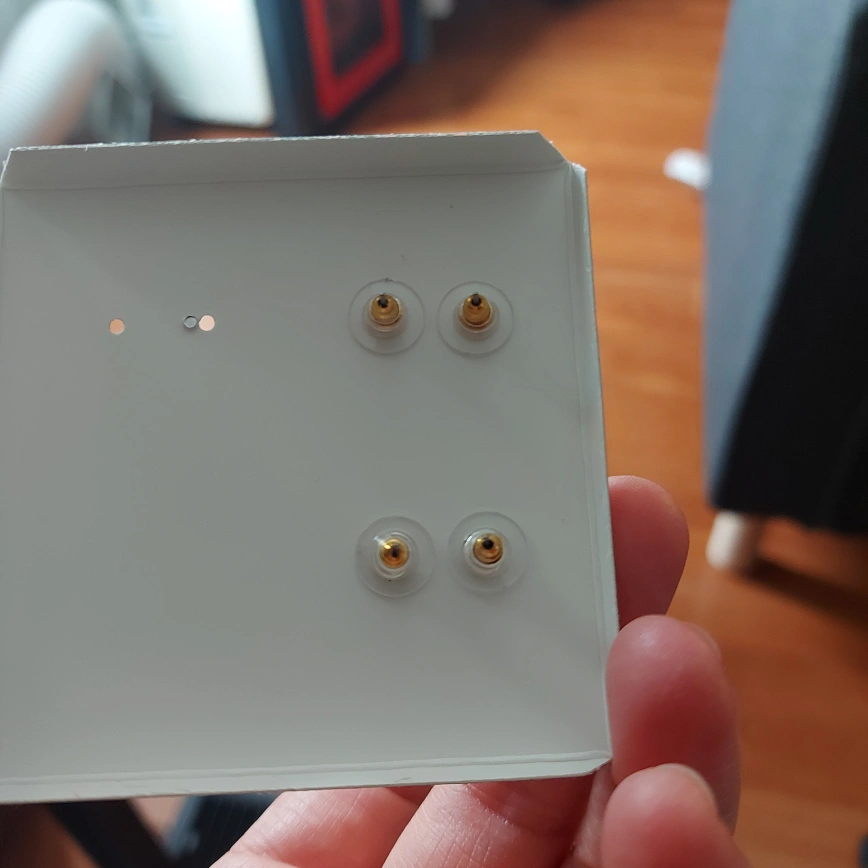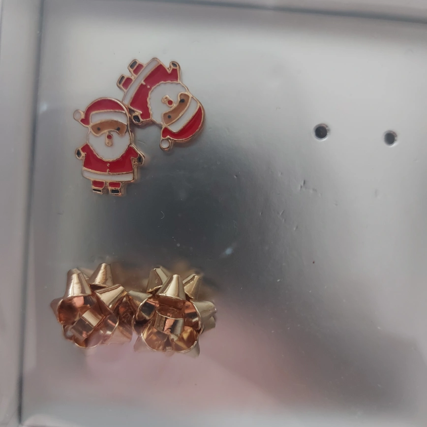 Christmas themed earrings. Two Santa Claus earrings and two gold bow earrings. New, never worn, and come in a box. Bought them at shoppers and only wanted the one missing pair. These are up for grabs. Happy to take $3 or a can of tuna in water or can of crushed tomatoes.