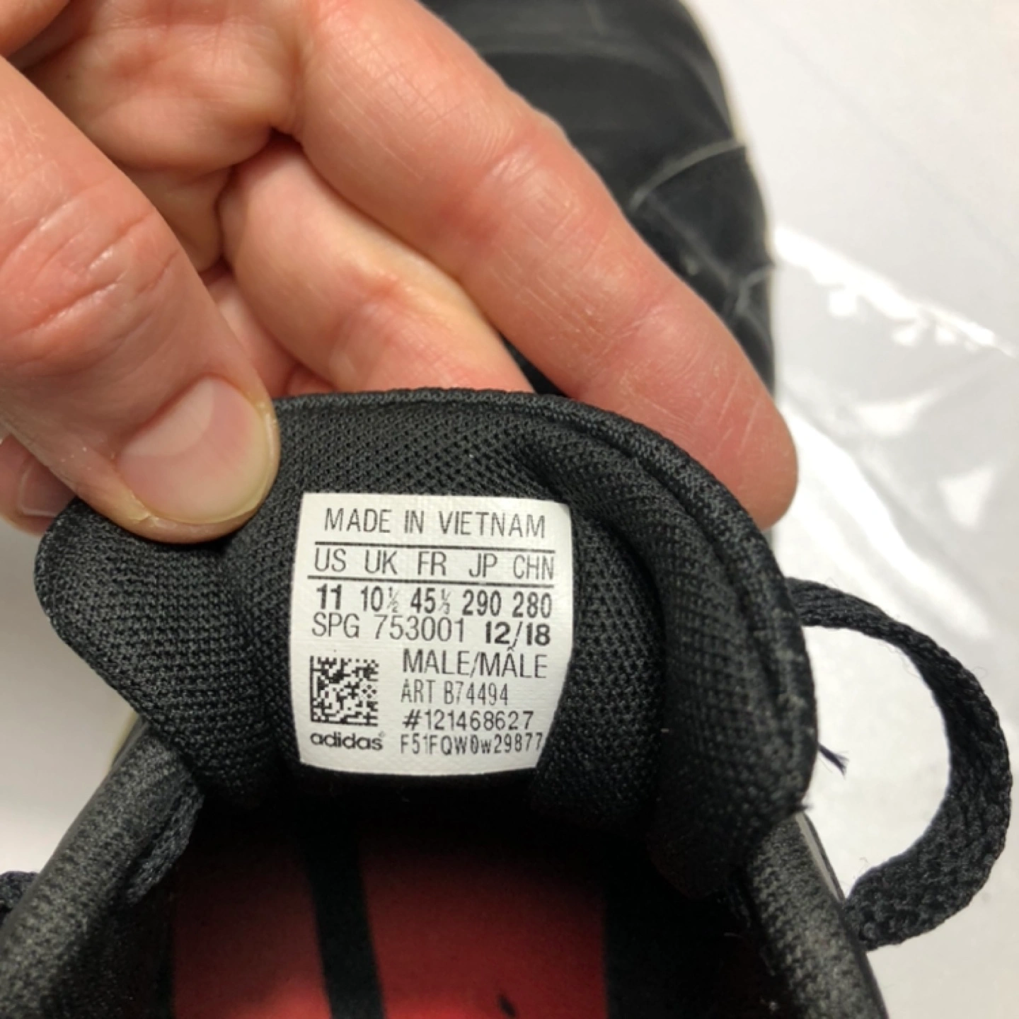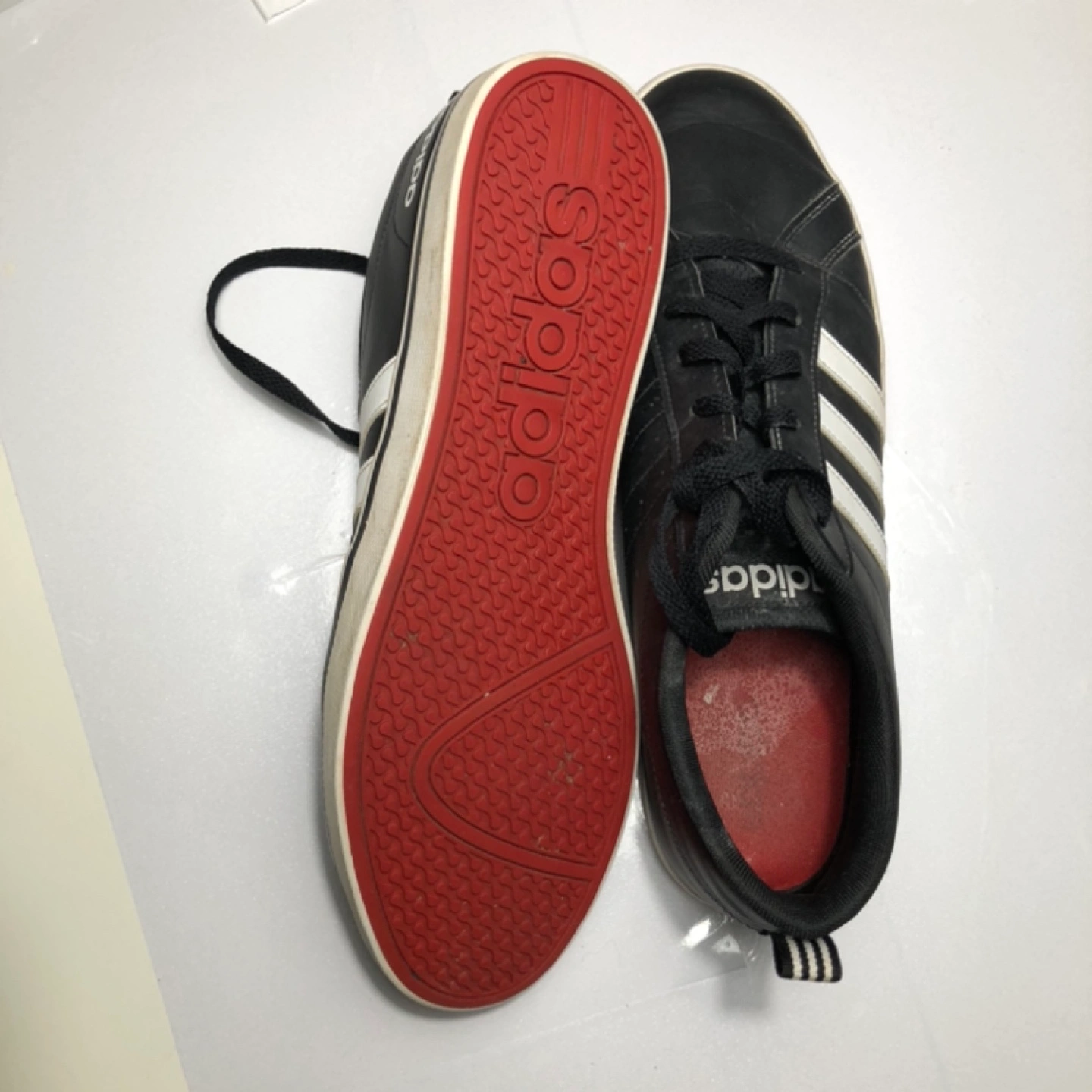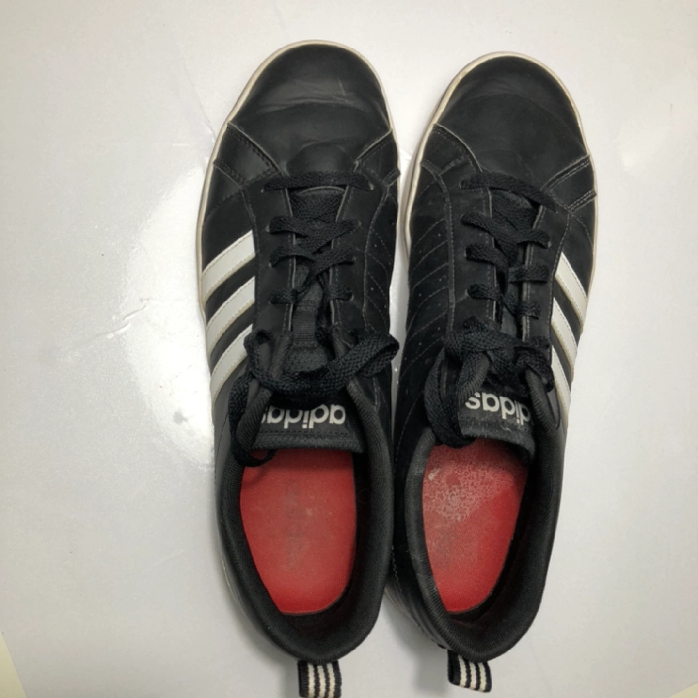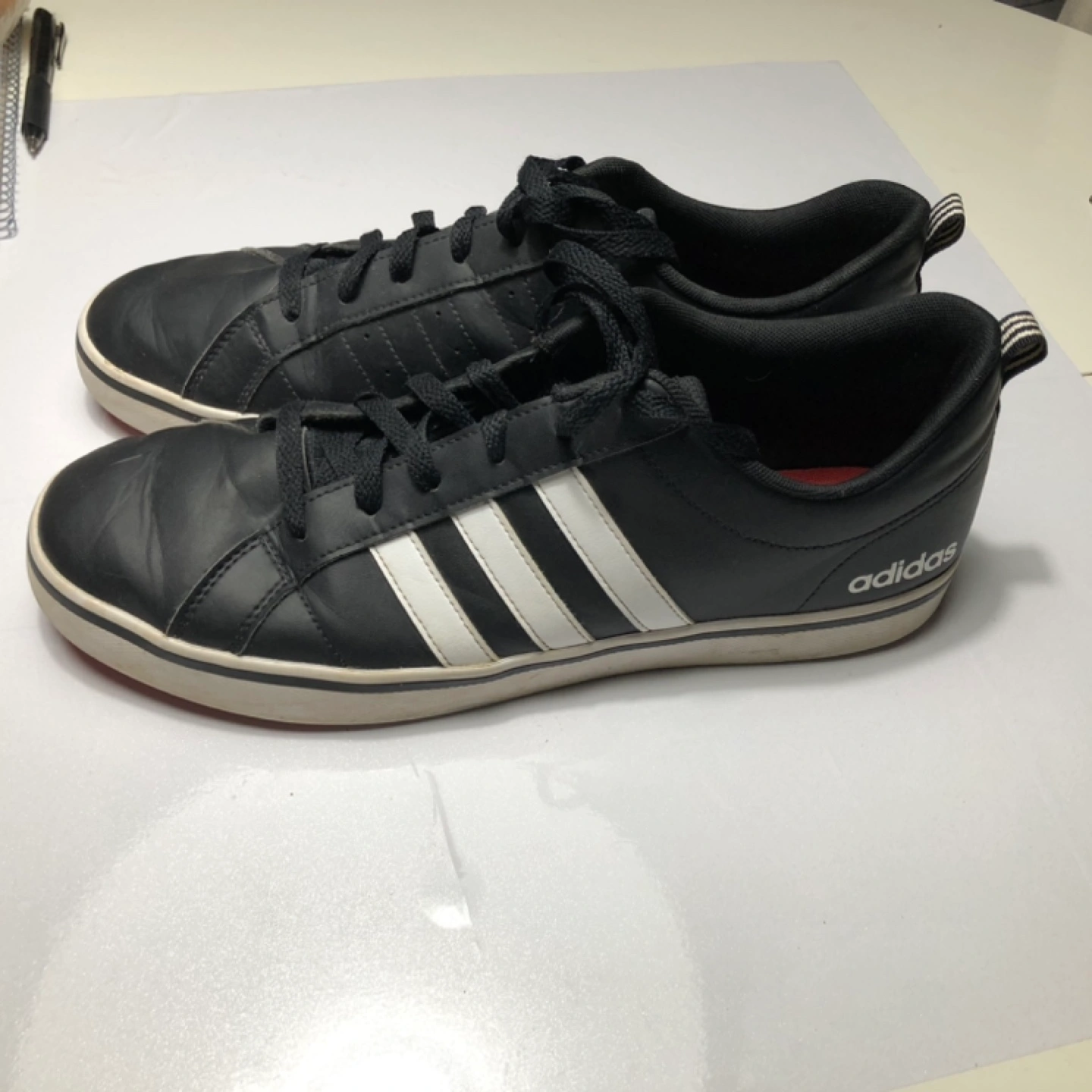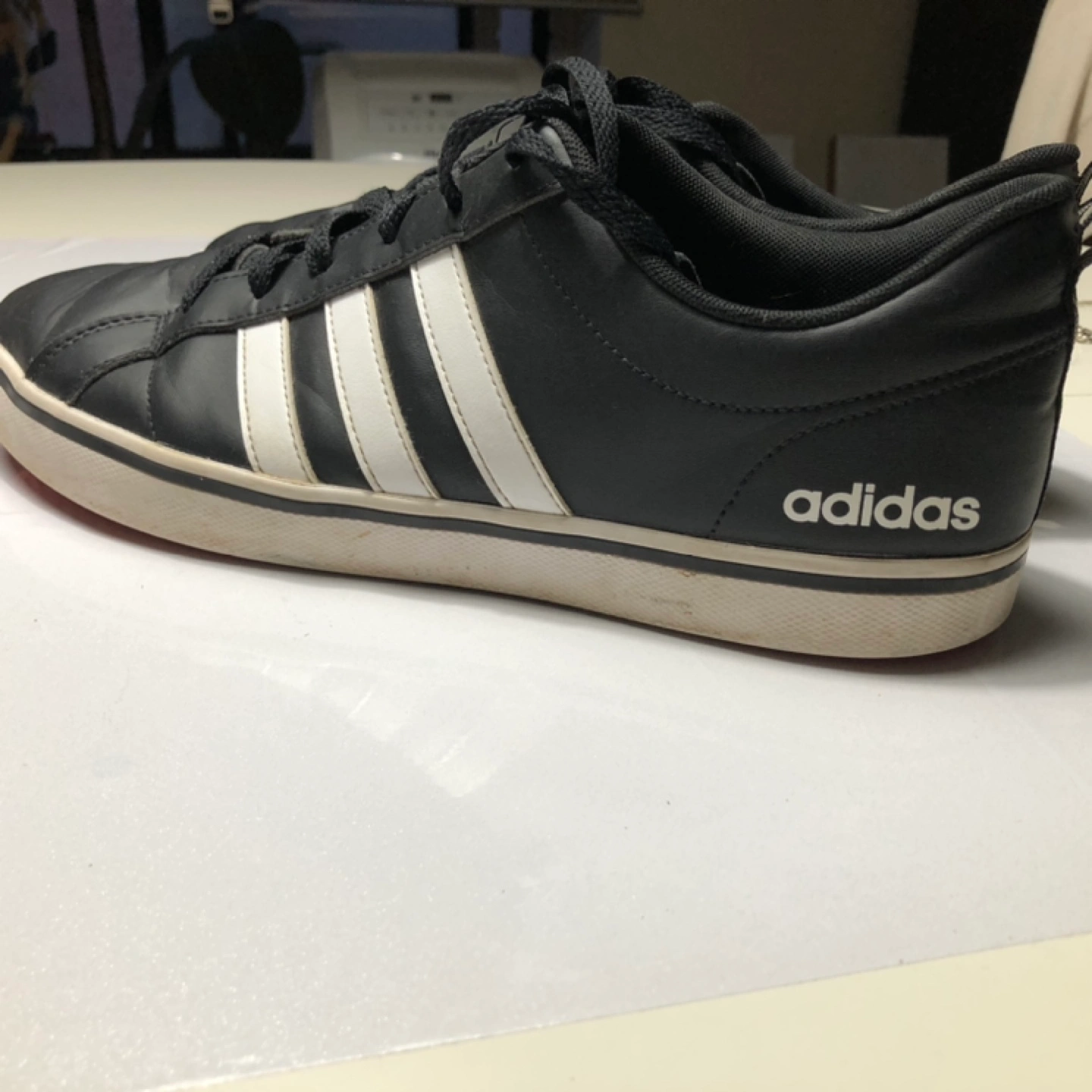 Classic black and white Adidas lace up sneakers, size 11. Made in Vietnam.