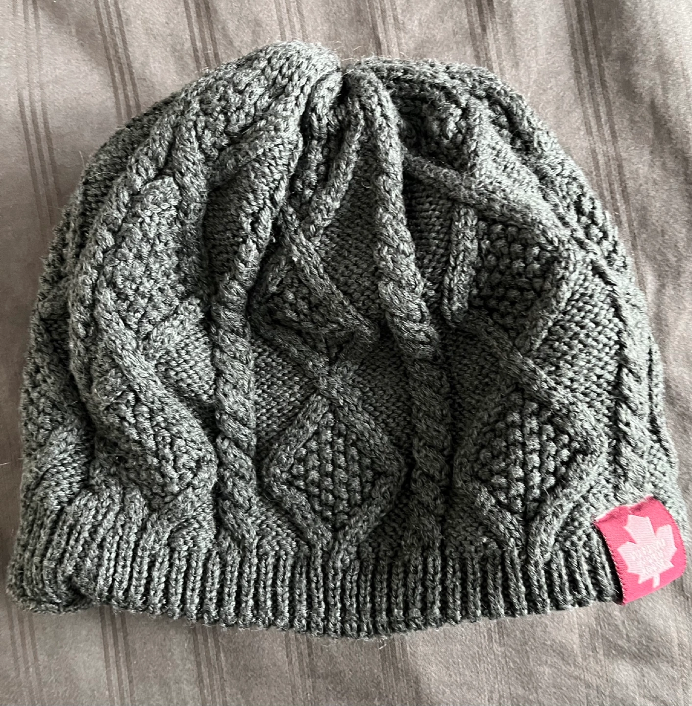Grey knit toque with a cable knit pattern. Official NHL product.