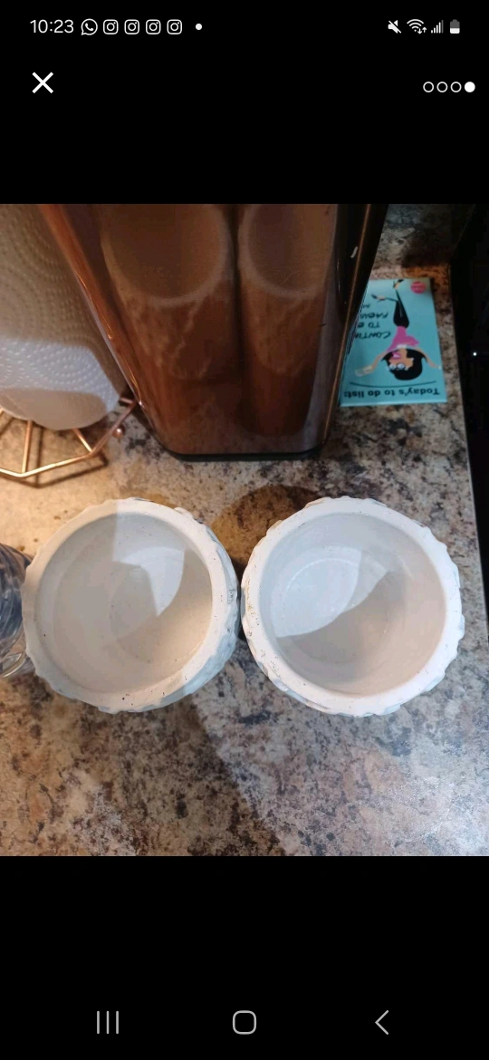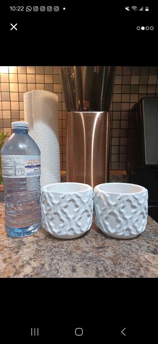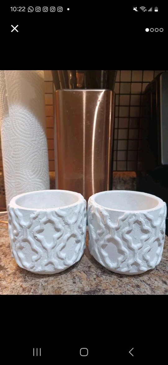 Two small white planters with a geometric design. Perfect for succulents, cacti, or other small plants. Purchased in the 🇺🇸 Never used 3.5 x 3.5 inches Price is for both; or 1 for for $4 Pick up available in south Pickering Send a message when you are READY TO PURCHASE Check out my other ads