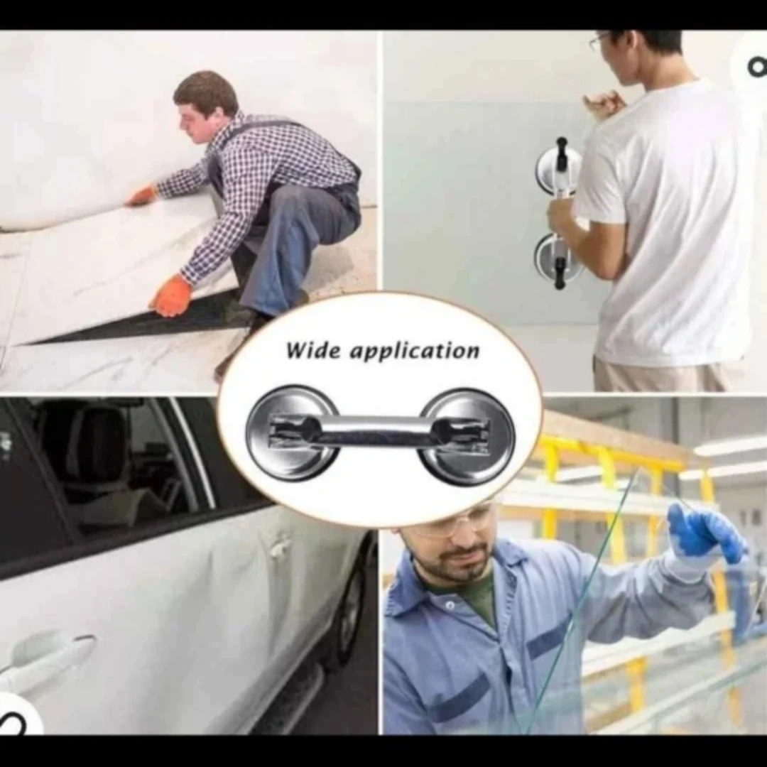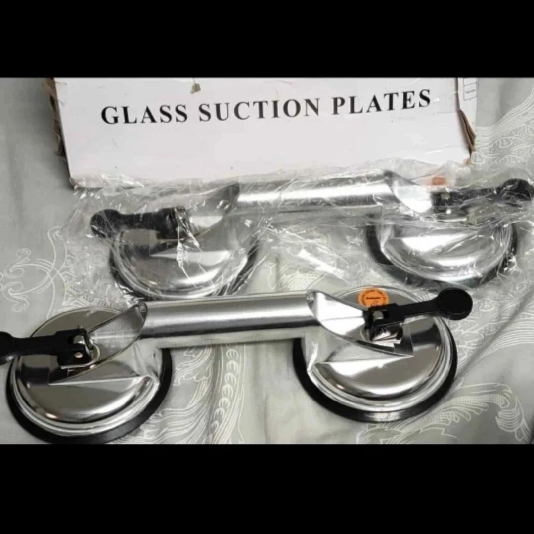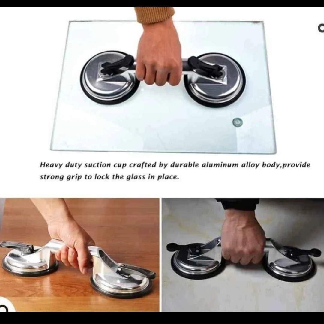 Two suction cups for moving and lifting glass. Heavy duty and crafted with durable aluminum alloy body, provide a strong grip to lock the glass in place.