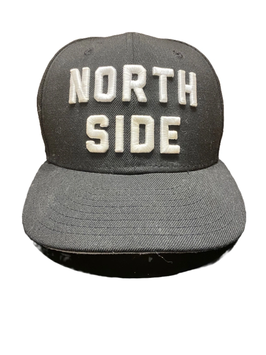 Black fitted hat with a white North Side logo. Size 7 1/8. New Era 59FIFTY.