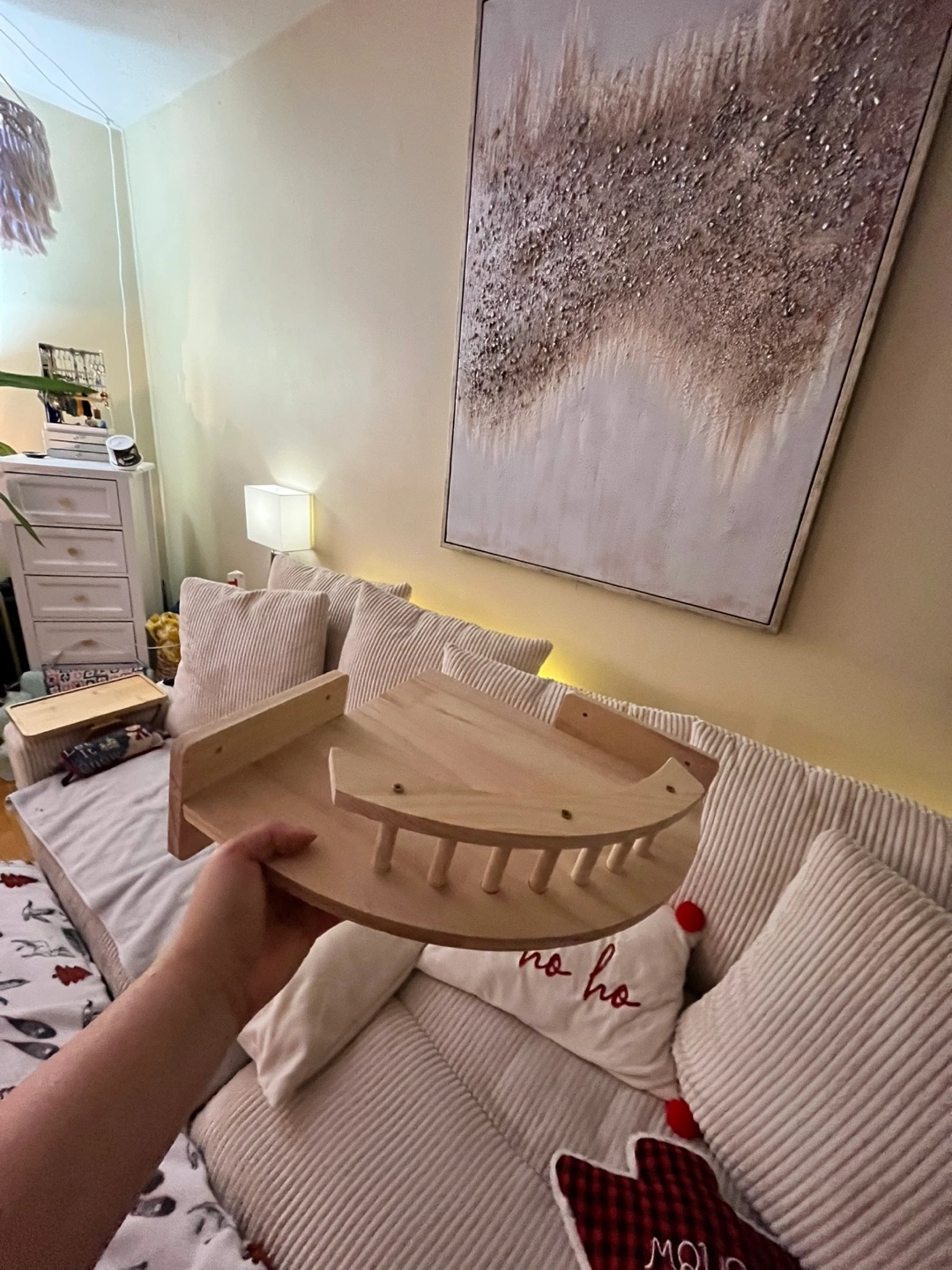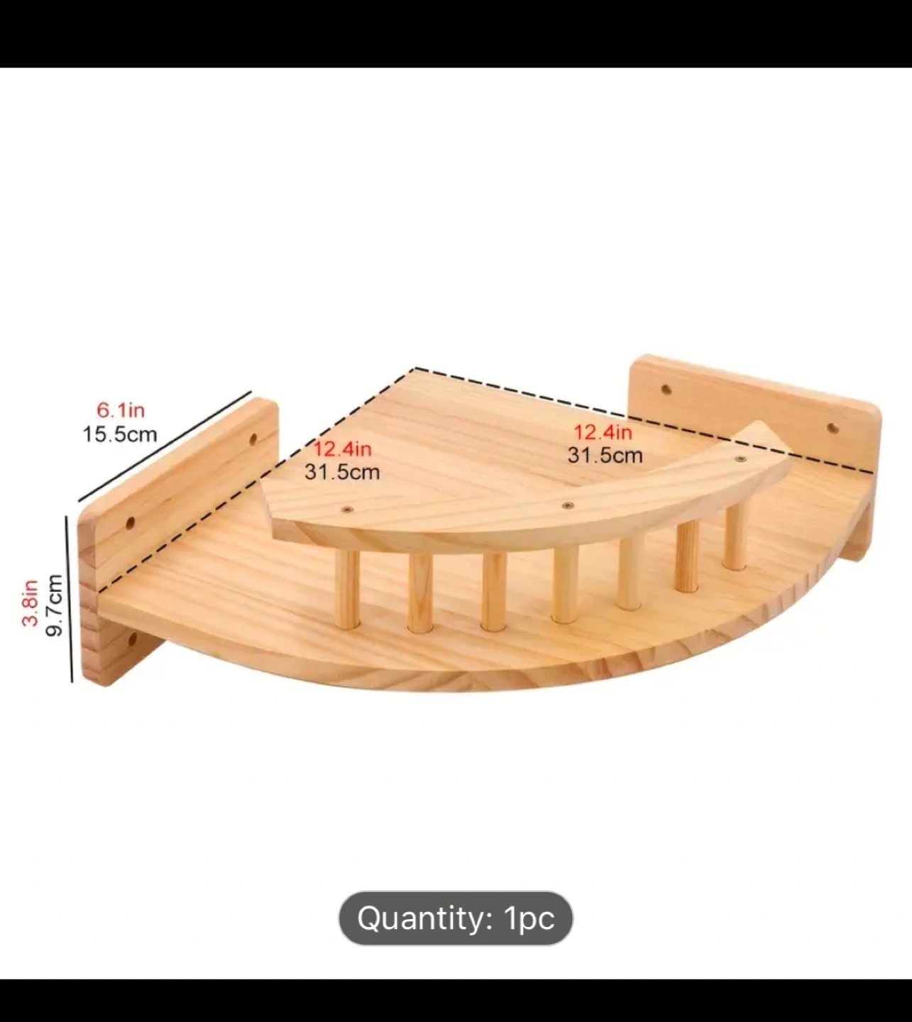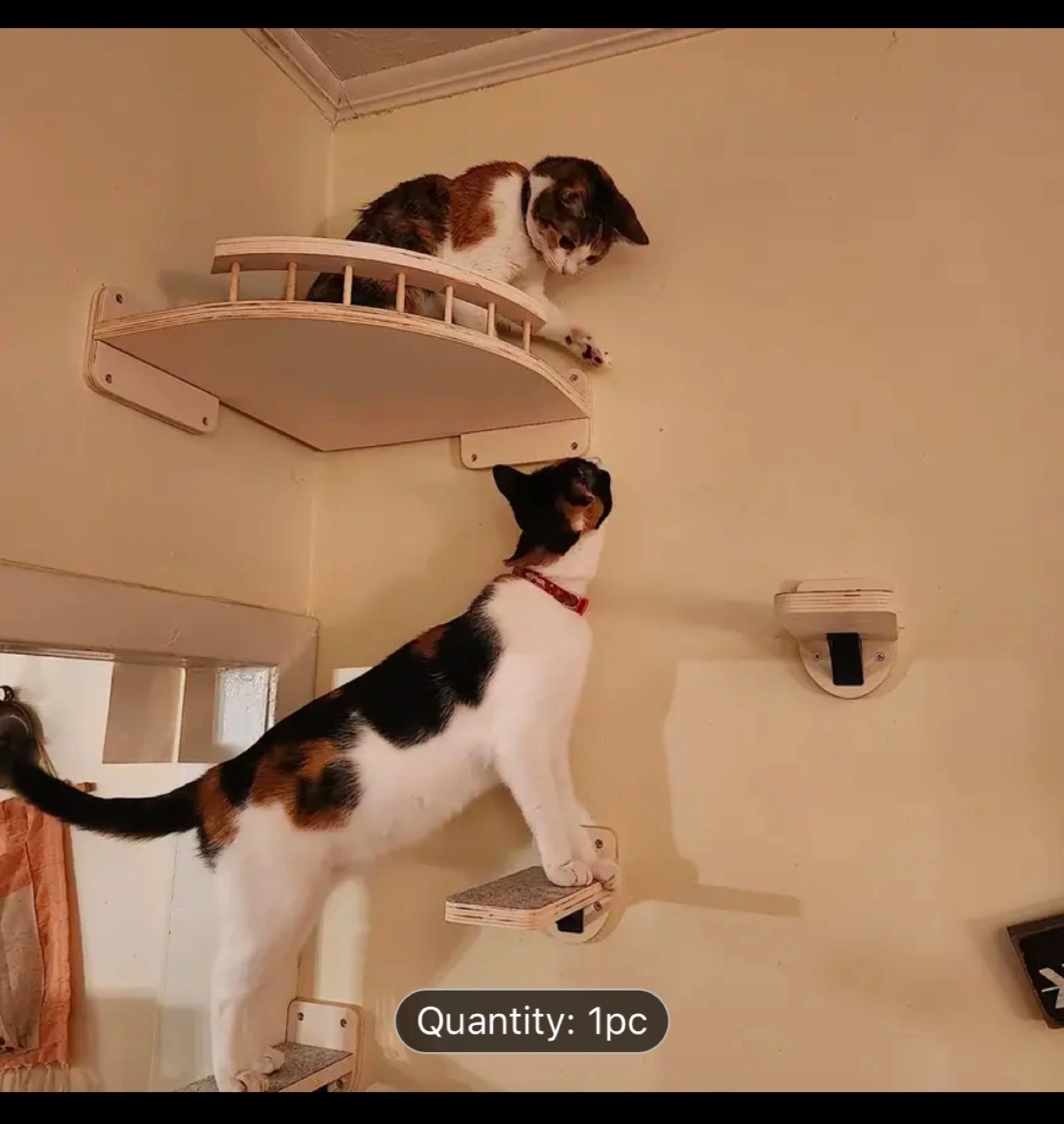 Cute little untreated wood corner shelf for your cat. Great for cats to play and climb on. Comes assembled and with wall plugs/screws for mounting. See pics for measurements. My cat is a senior now and doesn’t want to climb anymore so it was never used. **PLEASE READ** > FOR PICKUP ONLY: near King St West and Jameson Avenue in Parkdale. My exact address is only given for confirmed pickups.