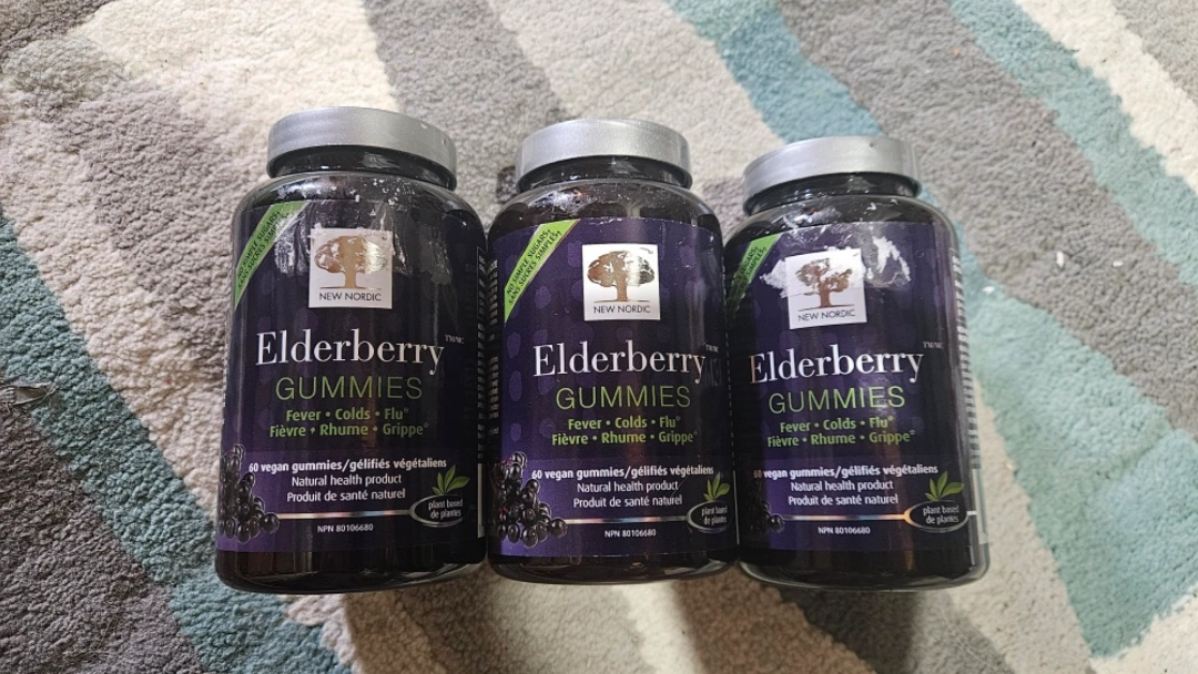 Three bottles of New Nordic Elderberry Gummies. 60 gummies per bottle. Natural health product. Plant based. All 3 for 10$ Pick up location Dufferin and Rutherford