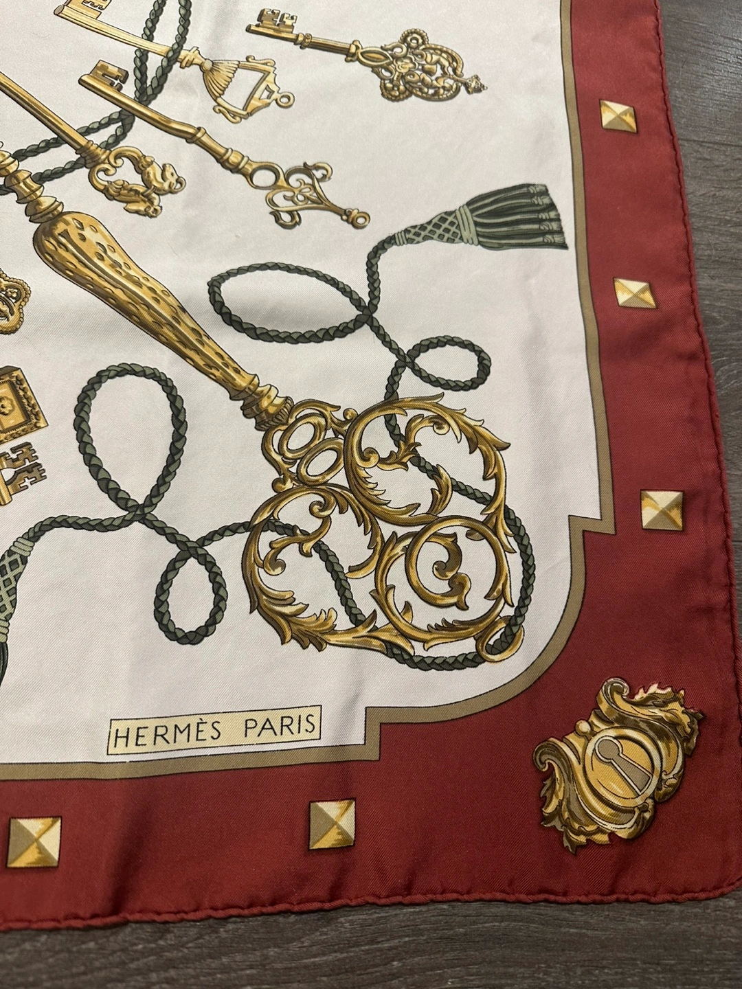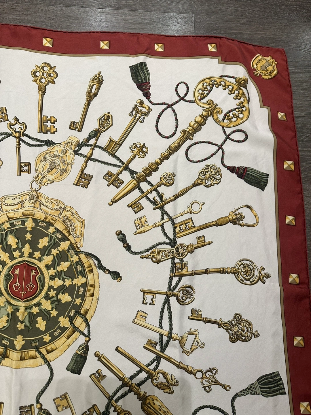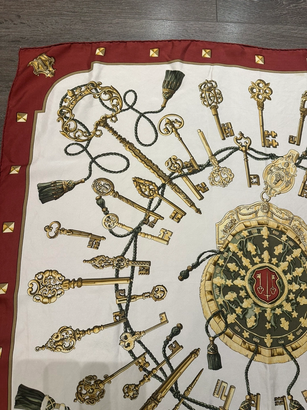 HERMÈS CARRÉ Les Clefs Silk scarf Vintage Good pre-owned condition. Stains, snags and imperfection are shown 90 x 87 cm Please check all photos and ask questions New retails for CAD $750+ after tax Big closet sale :)