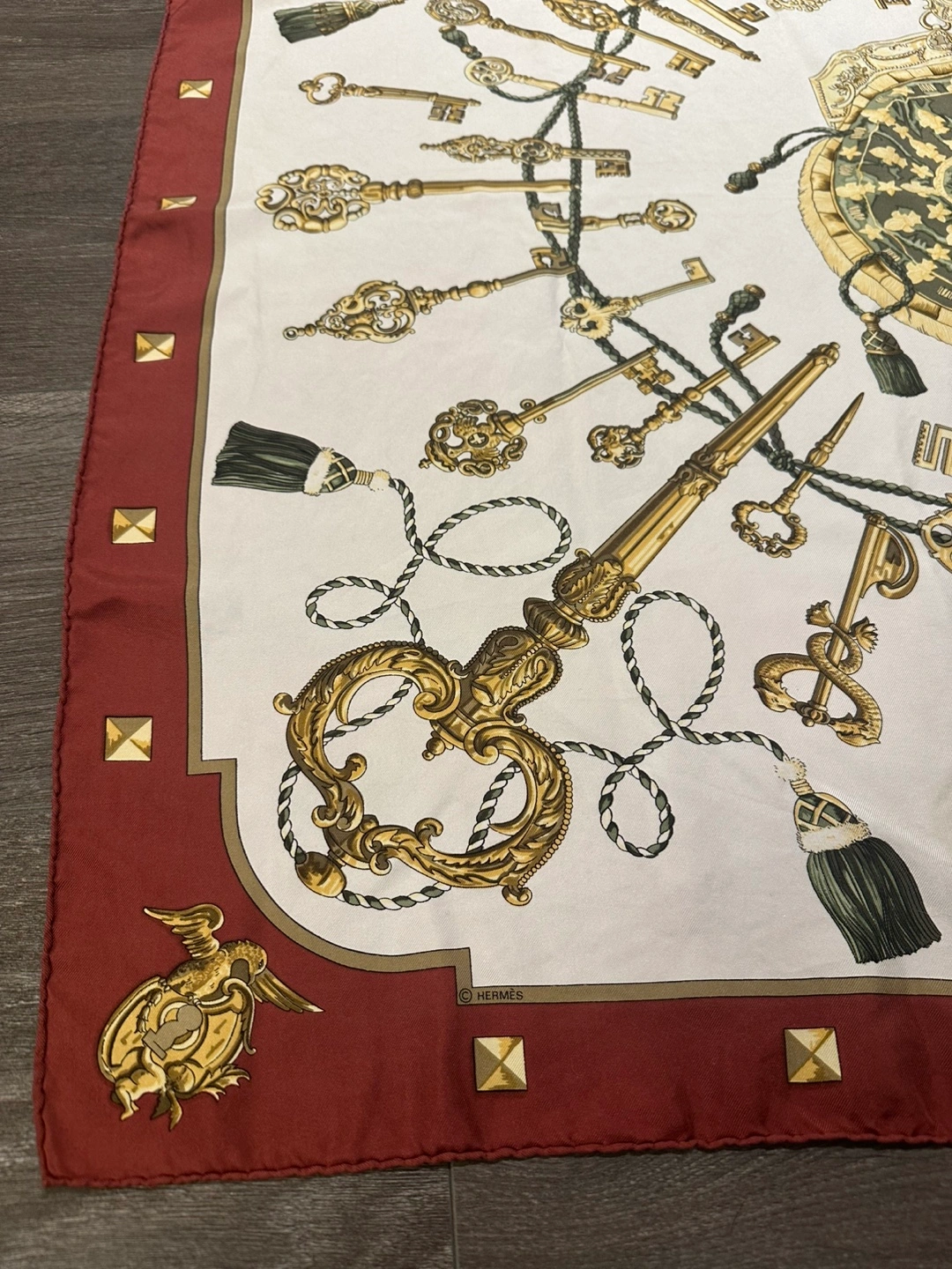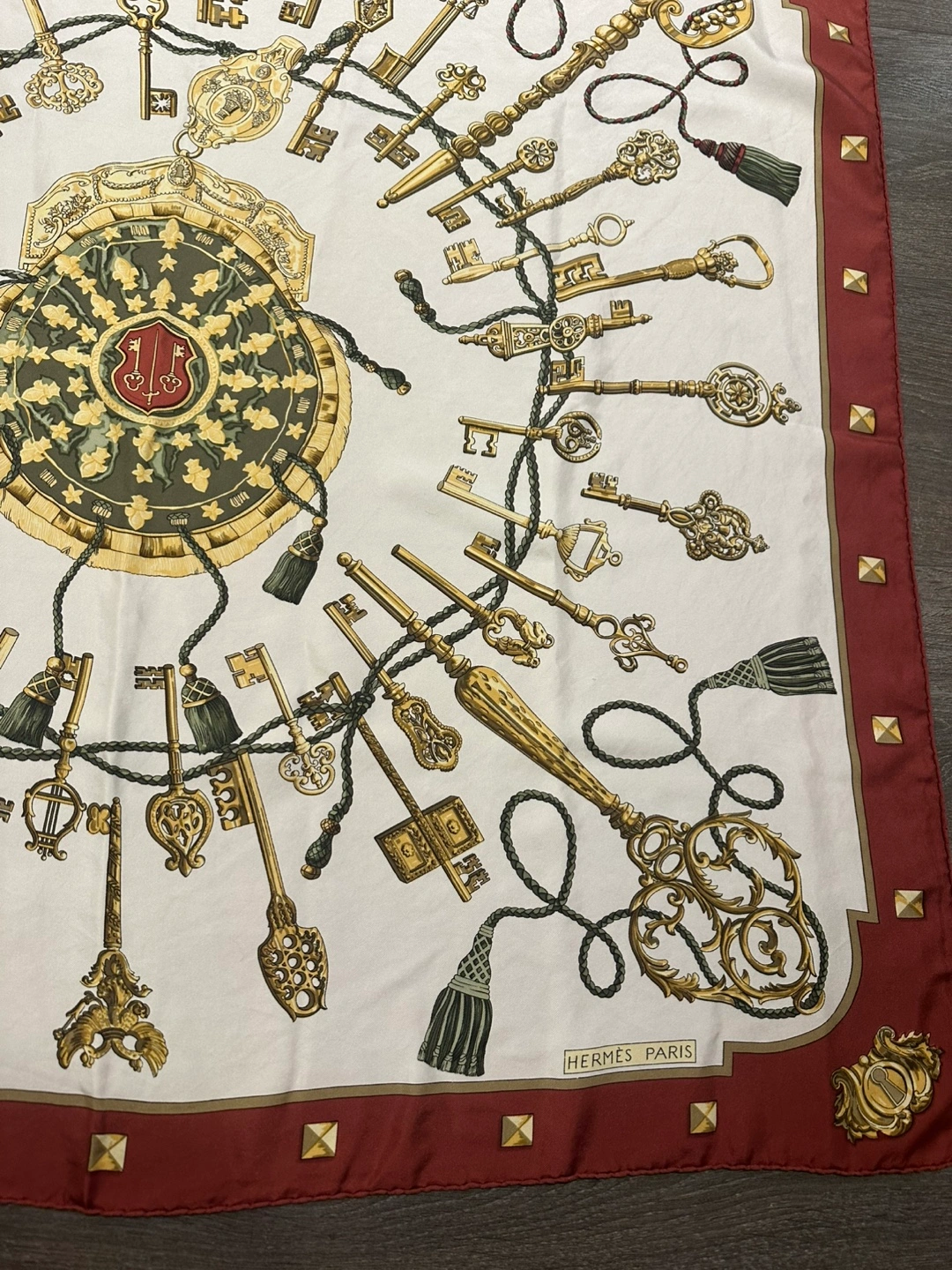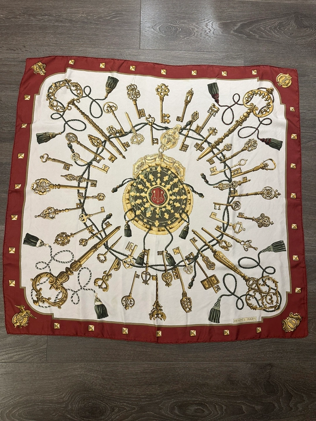 HERMÈS CARRÉ Les Clefs Silk scarf Vintage Good pre-owned condition. Stains, snags and imperfection are shown 90 x 87 cm Please check all photos and ask questions New retails for CAD $750+ after tax Big closet sale :)