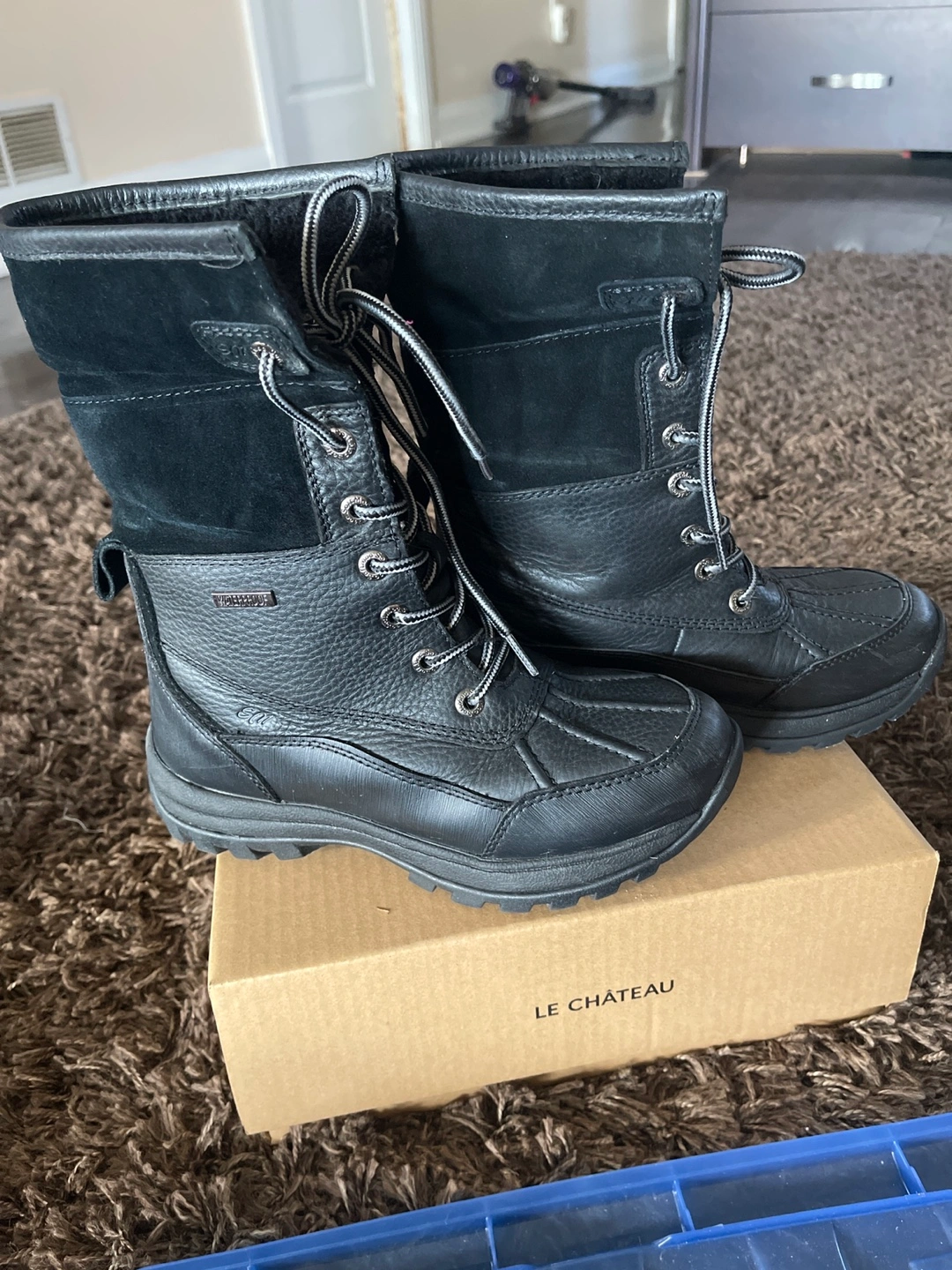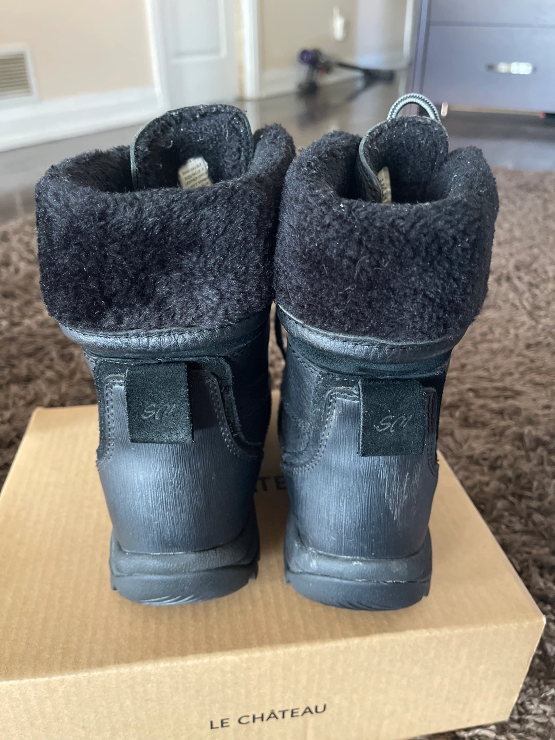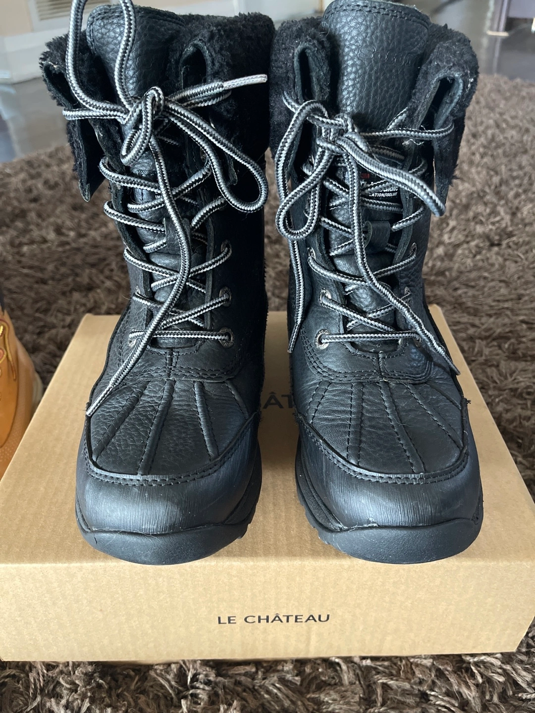 Like new Black leather winter boots with a faux fur lining. Lace-up style. Only worn couple times.the style is same as Ugg winter boots.the brand is Softmoc.