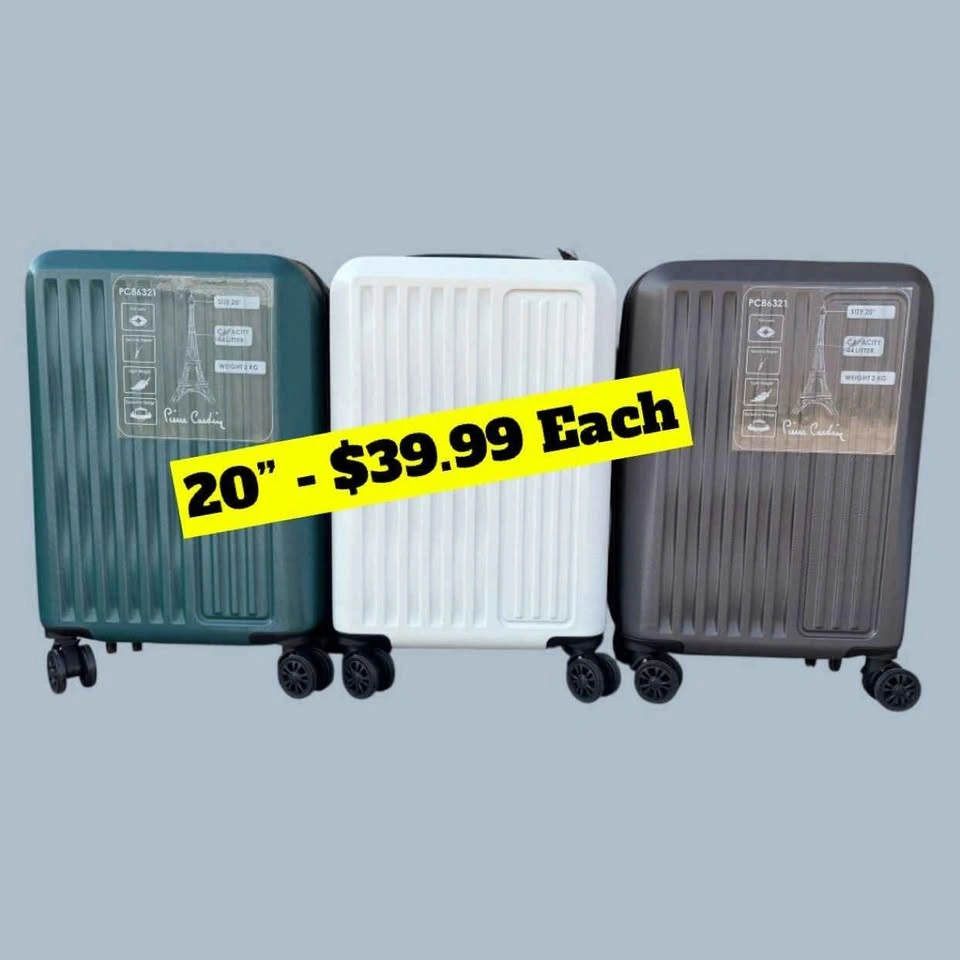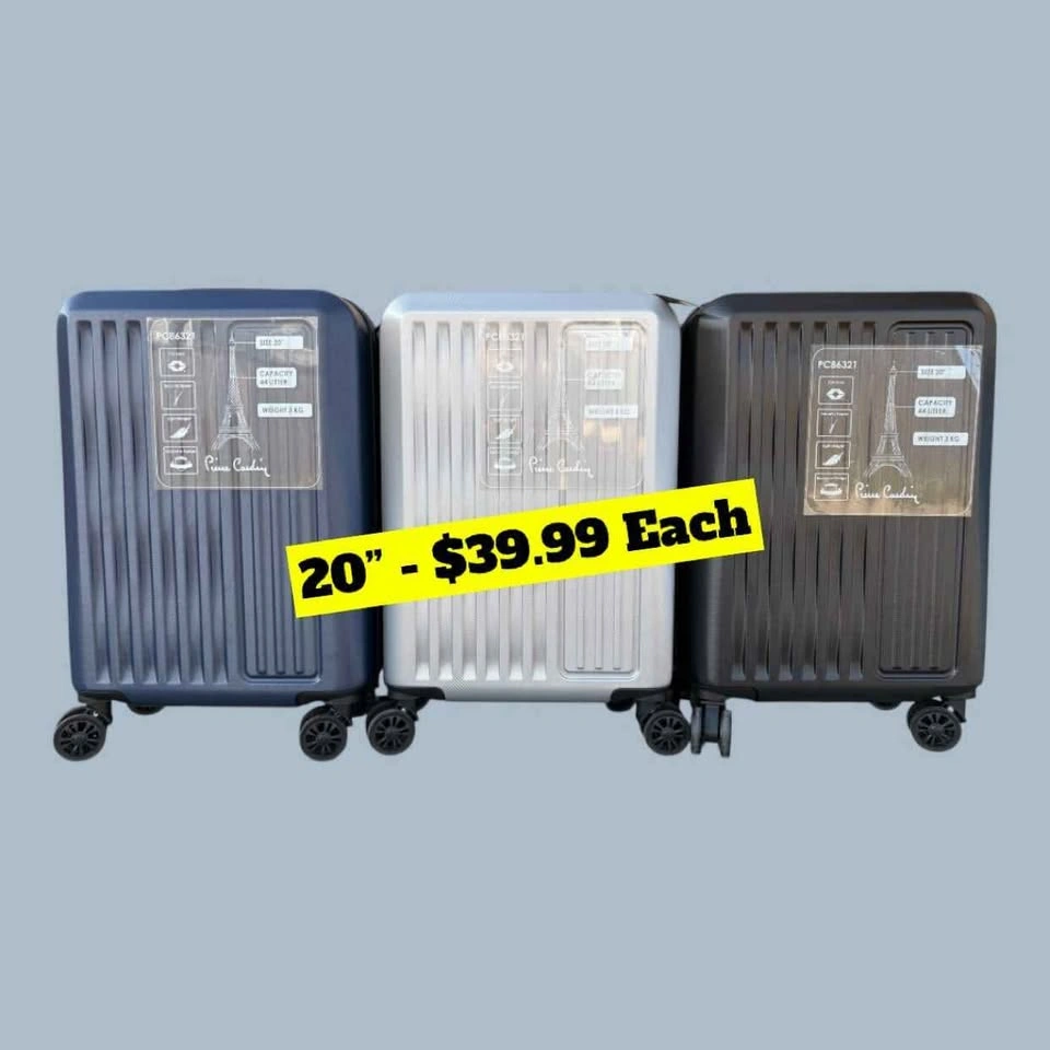 Pick up in Panorama Hills Nw, No Delivery. Brand: Pierre Cardin $39.99 for one Carry on/Hand Carry Size for 7-10 Kg Features: ✅ Lightweight ✅ Anti Theft Zipper ✅ Built in Combination Lock ✅ Large Storage Capacity ✅ Fully Lined Interior ✅ 50-50 Split Design with Zipper Closure on One side ✅ Telescopic Handle ** Price is Non - Negotiable ** Payment Methods: Cash/ Debit Card/ E-transfer