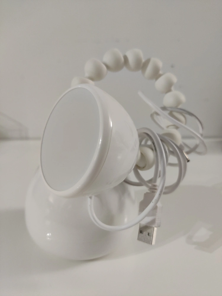 Twisted arm can easily adjust the angle of the light. Touchable turn on/off, very handy!