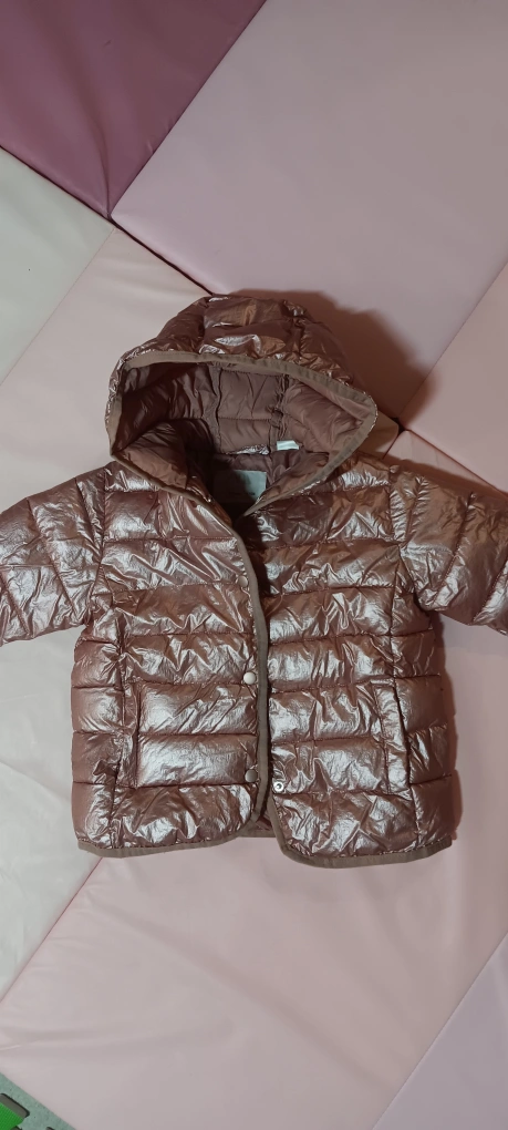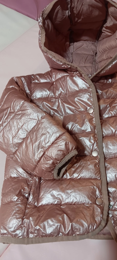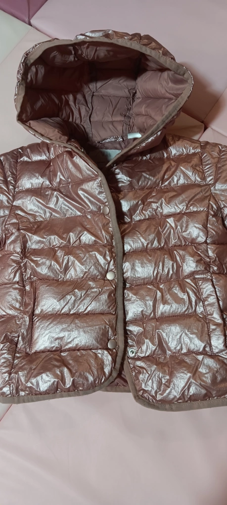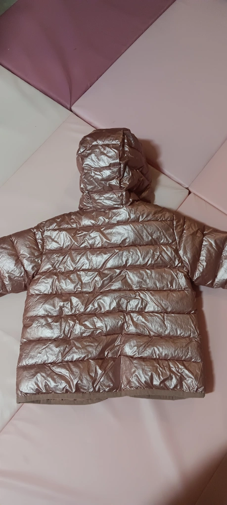 Girls' pink puffer jacket with a hood. Size 3-4 years.
