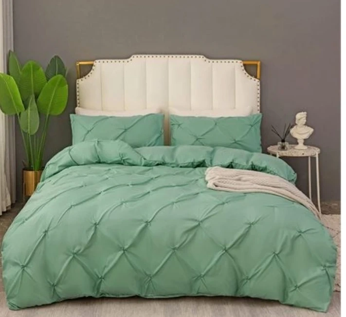 Sz.Queen 3pcs *Like New* pin tuck Duvet Cover Set (Light Teal) zipper closure at the bottom Note: no other accessories included only the duvet cover and the 2 pillow cases Can be used for your comforter too if you want to give it a modern fresh cohesive look. please also check out my other listing if you see it posted on here it means it is still available I am happy to meet at any TTC subway Station near the Presto Gates or if you require me to come to your building front just send me a message and I'll see if that location is easy for me to get to around Toronto or Etobicoke. Just send me a message!