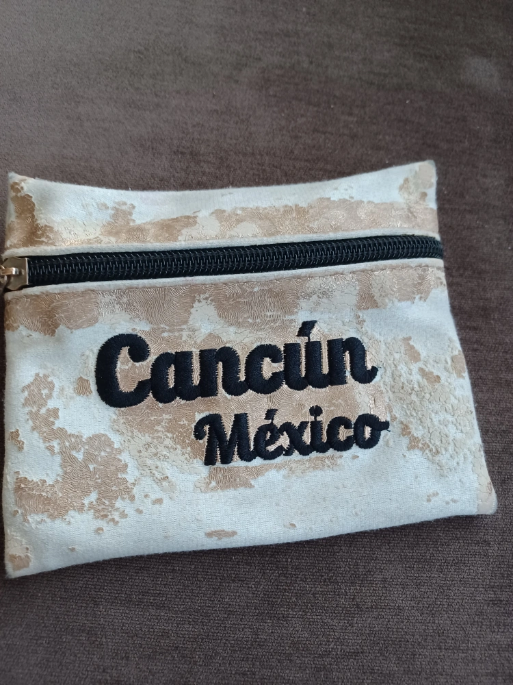 Small zippered bag with Cancun Mexico embroidered on the front. faded gold zipper works great free yonge n sheppard pick up