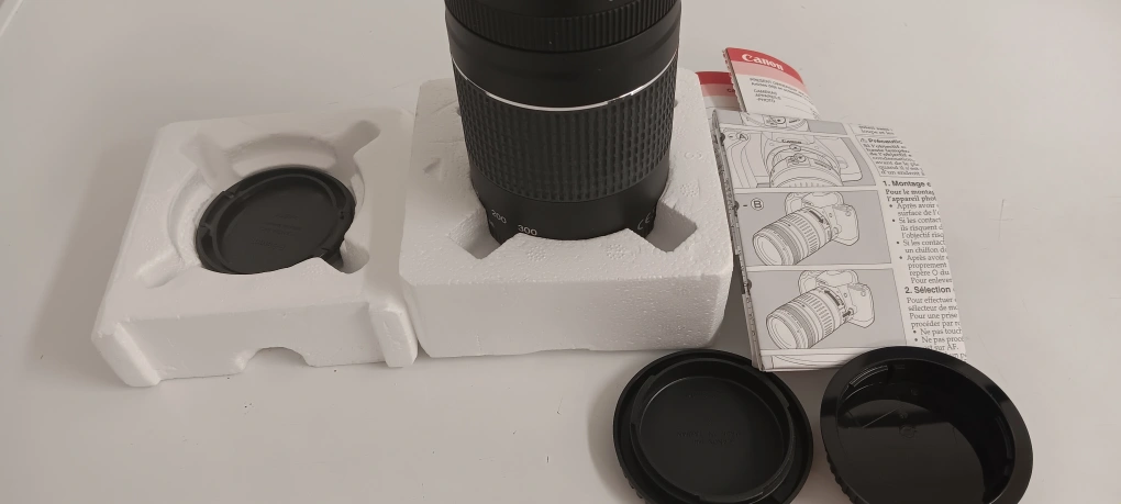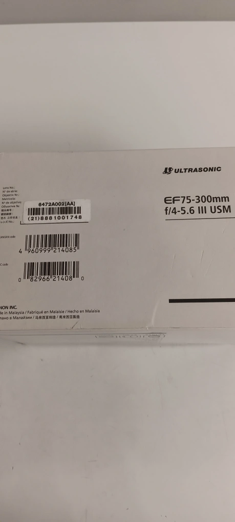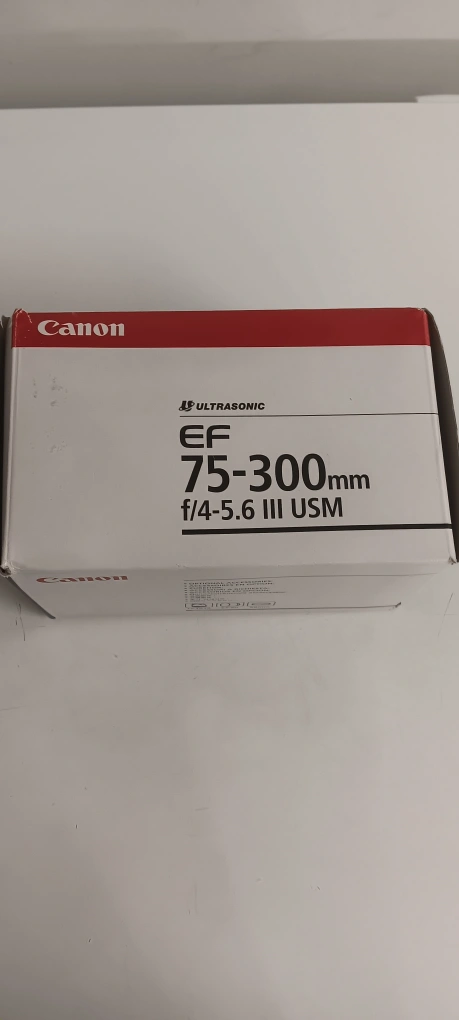 Canon EF 75-300mm f/4-5.6 III USM lens. Includes lens caps and instruction manual.