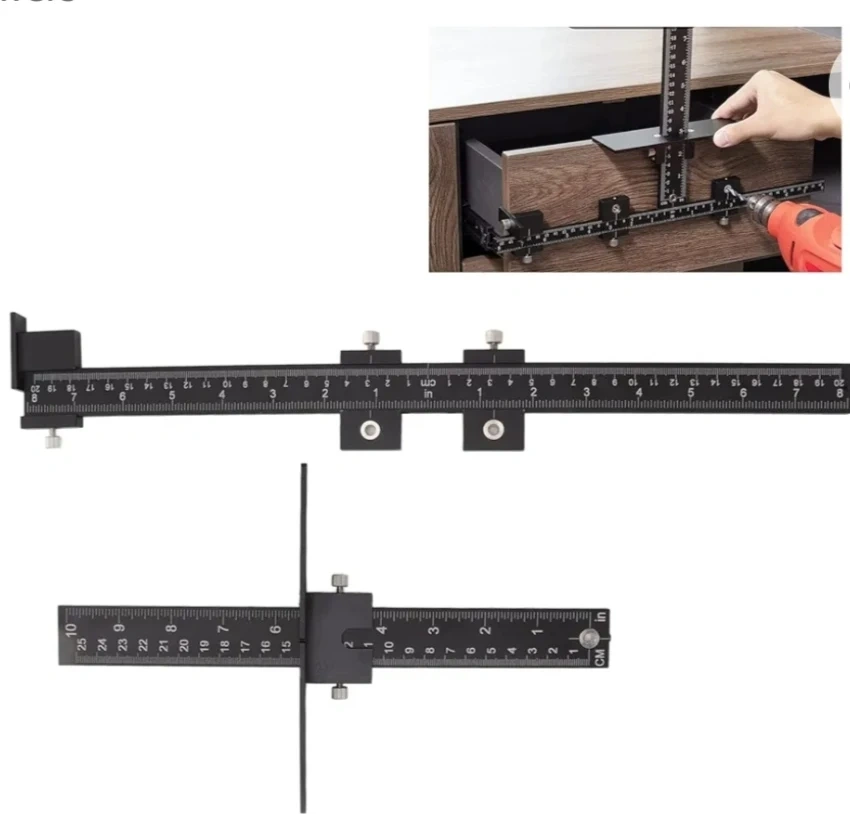 Like new condition NO CLAMPS The cabinet hardware jig works without clamps and can be flipped over for quick drilling. Simply turn the clamp over to repeat the setup on the opposite door. Adjustable and Accurate The adjustable hole punch locator can be adjusted to any length to quickly determine the location. It brings you perfect measurements for accurate drilling. Easy to Use The multifunctional drill guide with screw knob allows easy adjustment of the drilling distance to different handle sizes. Aluminum Alloy Material Our aluminum alloy cabinet hardware fixture is strong and hard, wear resistant and corrosion resistant. Detachable & Portable This cabinet handle jig can be disassembled into small parts for easy transportation in a small space. A great tool for woodworking or installations.
