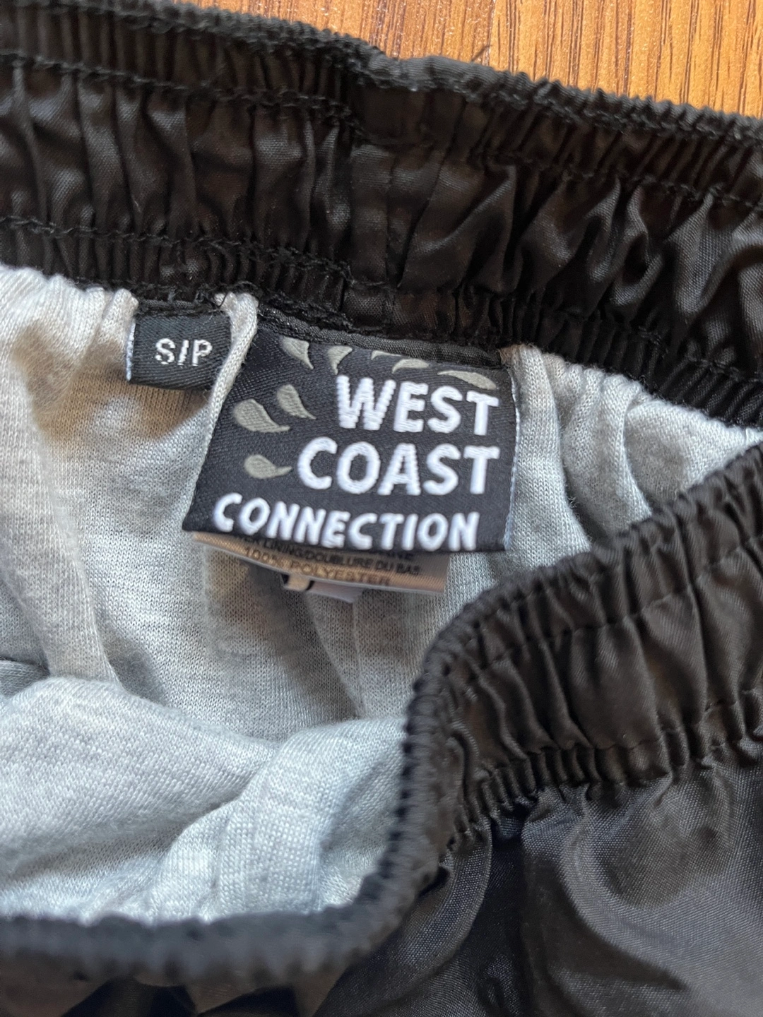 Excellent condition. Black splash pants with elasticized waist and side pockets. Grey lightweight jersey lining. Pickup in Oshawa - Harmony/Rossland area