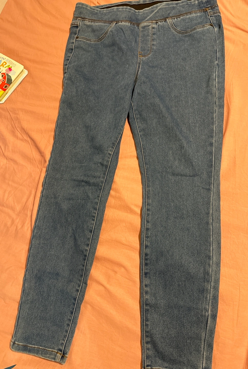Brand new without tags - Blue denim jeggings with a black elastic waistband. Stretchy and comfortable. Not my size . Never worn. Need gone asap.