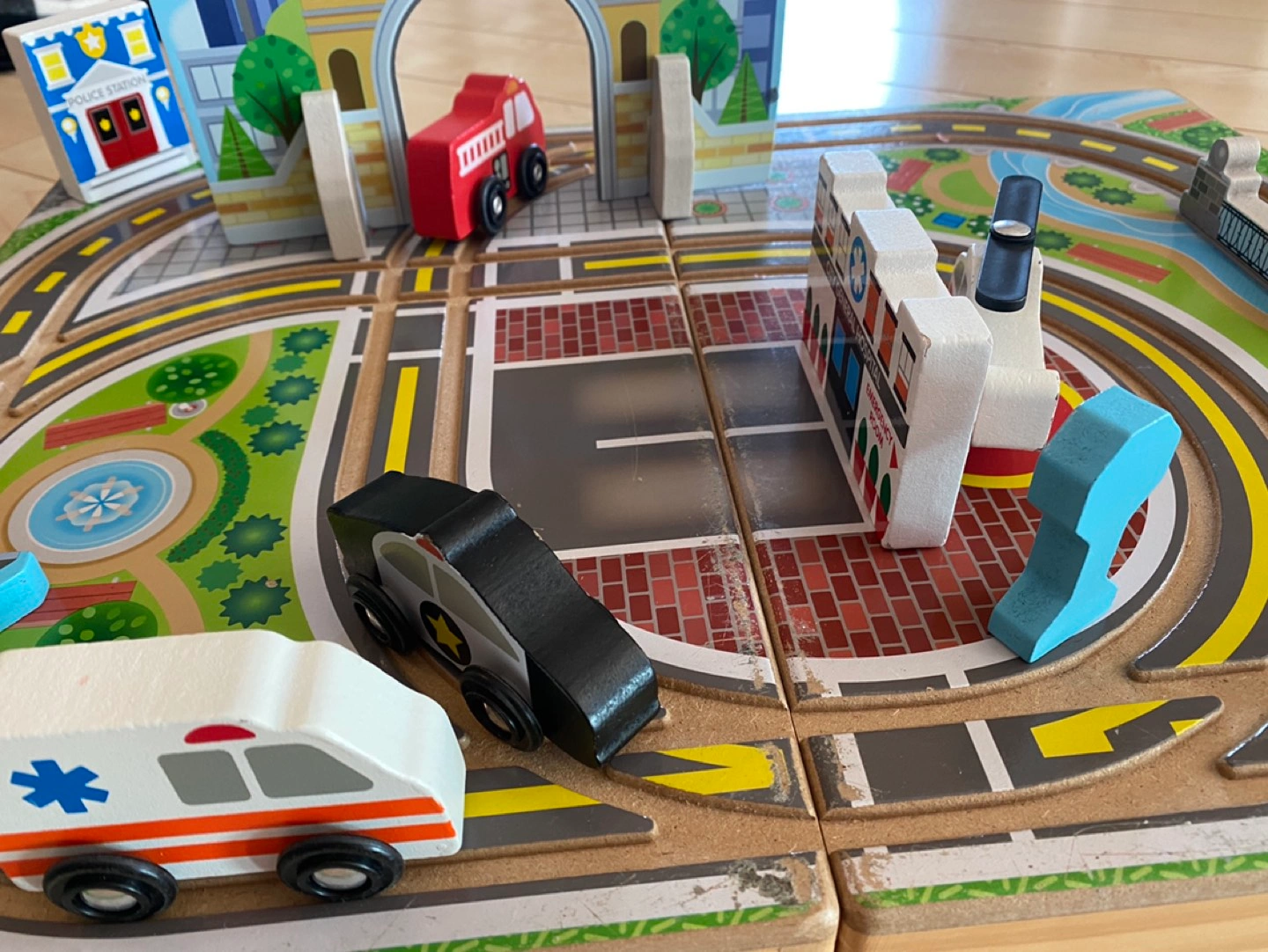 Built-in roads, vehicles, traffic signs, buildings,etc (Some scratches on the surface of woods)