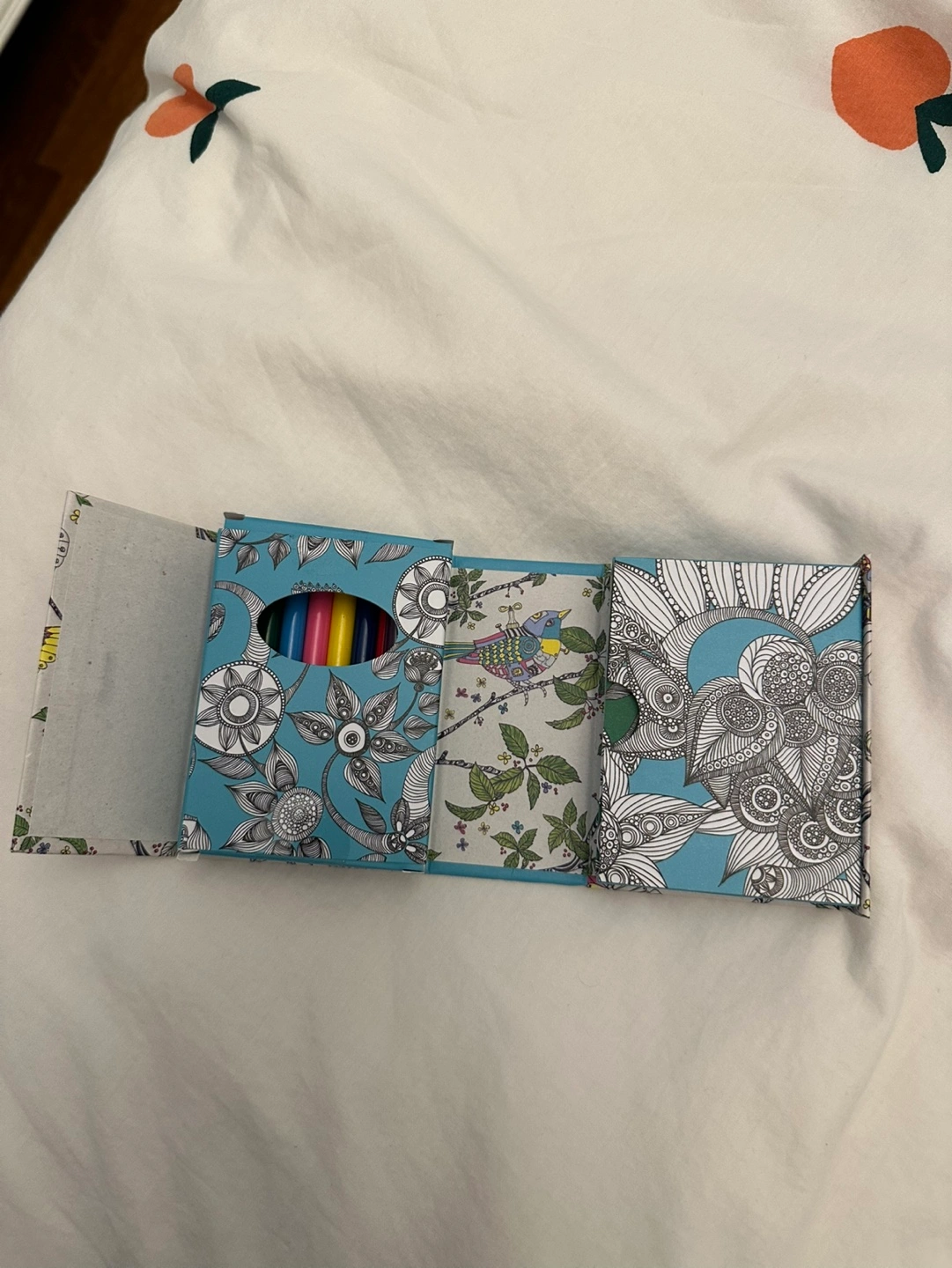 839Mini pocket sized art therapy coloring kit with colouring pencils and cards maybe 3 cards used only, has a lot of life left in it and hope someone else can put it to good use :) pick up only