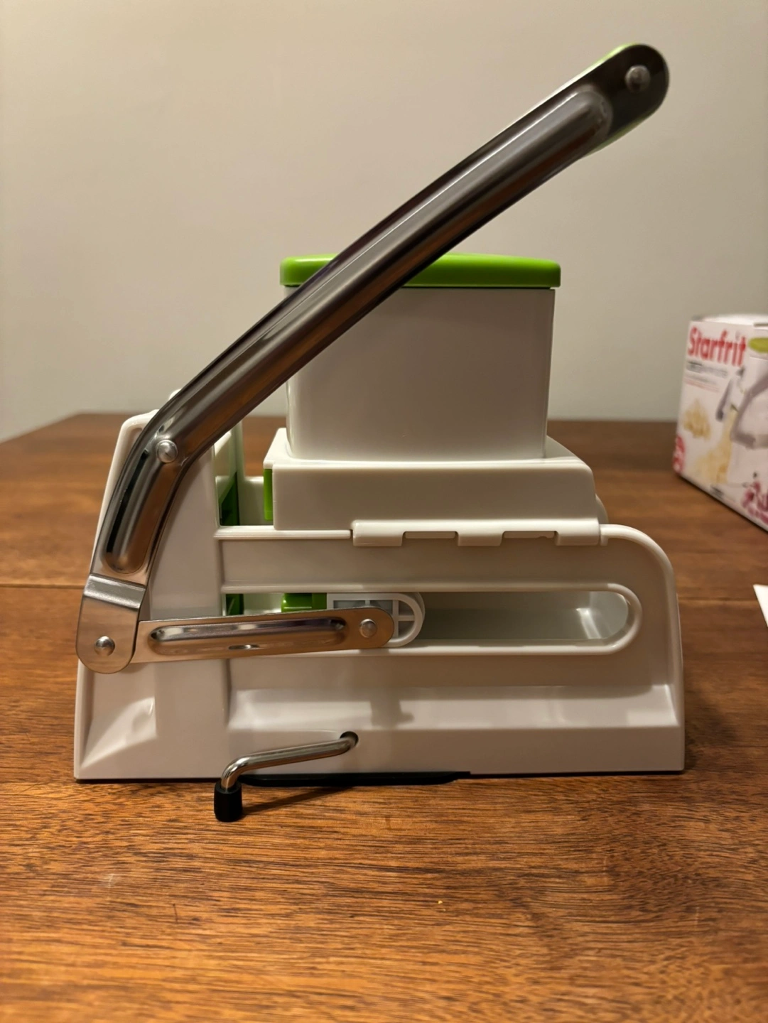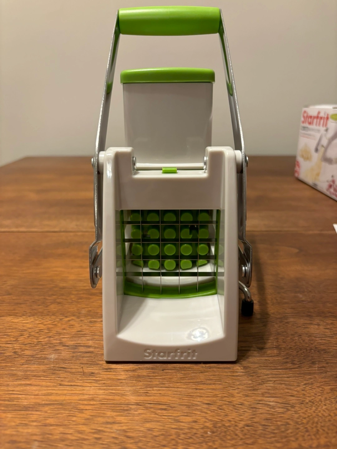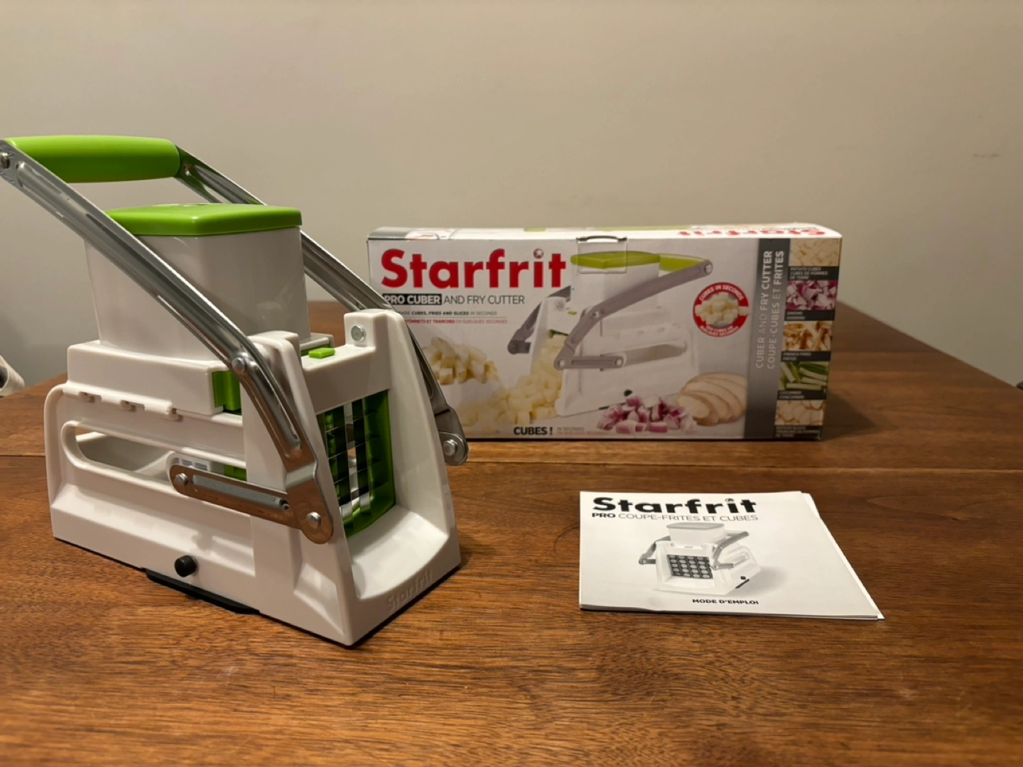 Brand new never used. Cubes in 2 simple steps, cuts the whole potato at once, non slip suction base. Top part easily comes off to make it a fry cutter. All pieces are detachable for easy cleaning. Cash only.