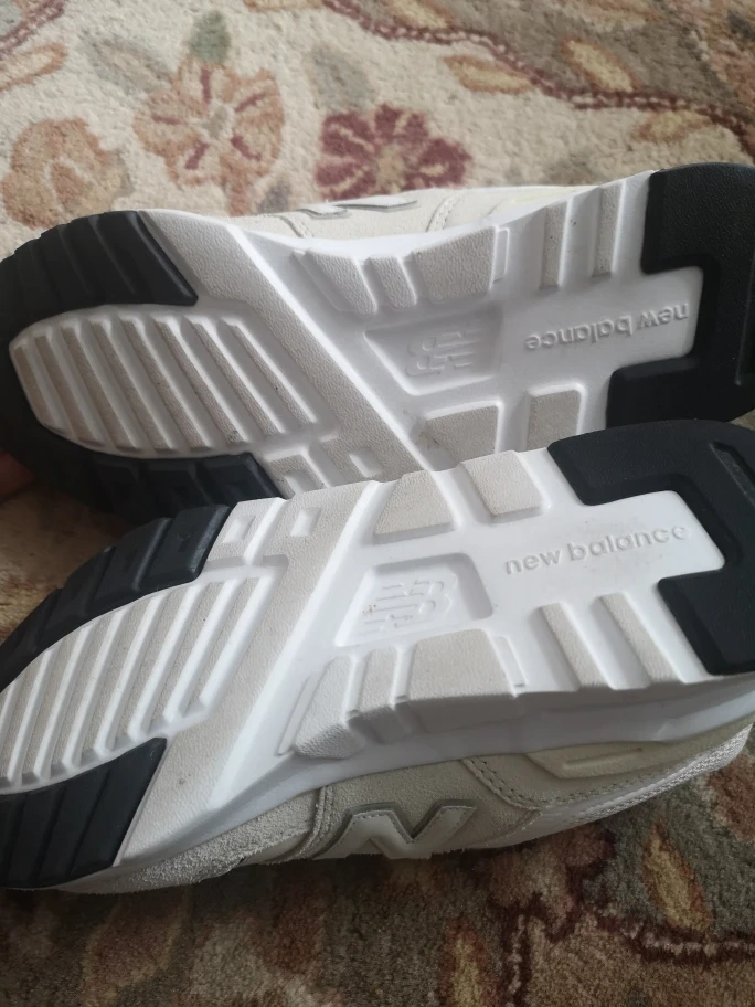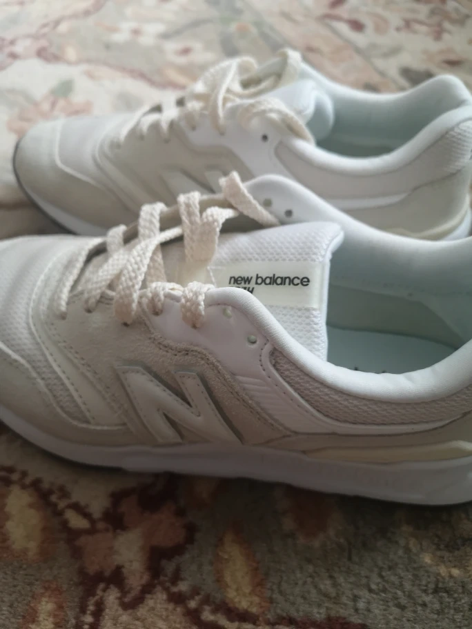 White sneakers with off-white suede, mesh, and leather accents. Size 7 Women. Worn twice but a half size too large. Excellent condition. PICK UP ONLY NO DELIVERY