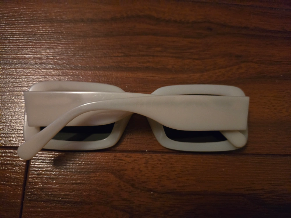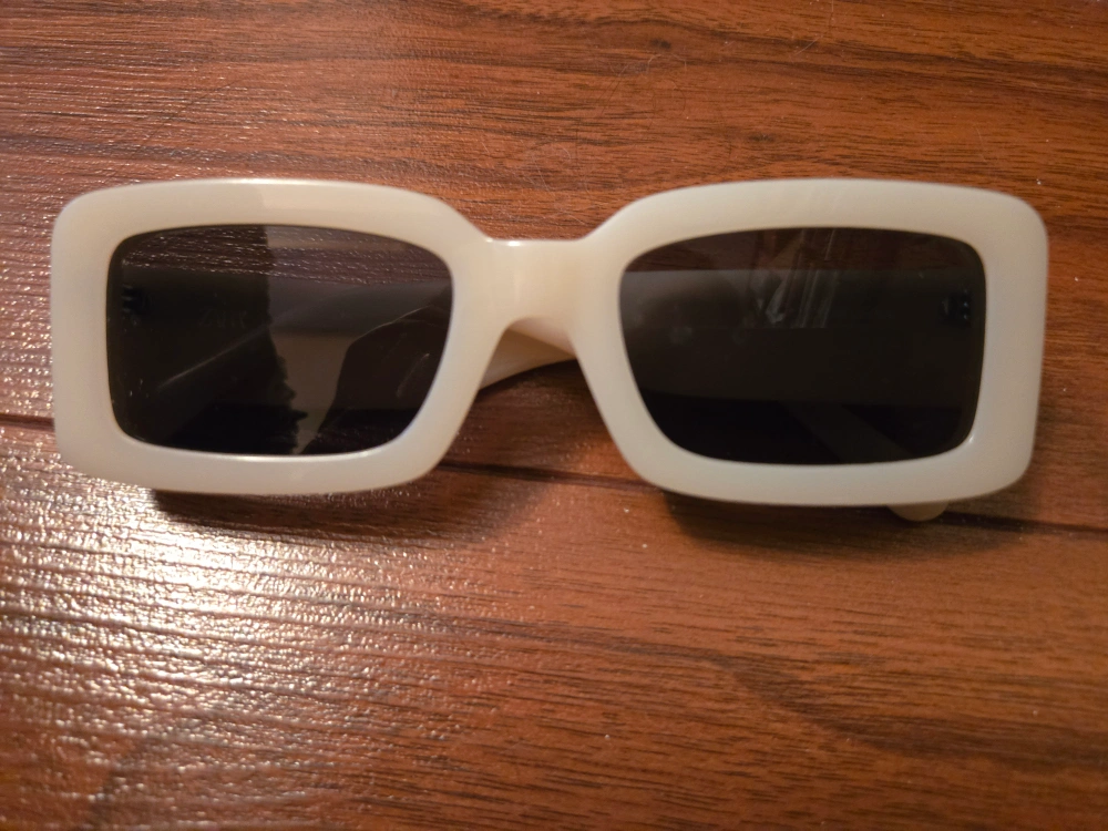 White/cream square sunglasses with dark lenses. Excellent used condition.