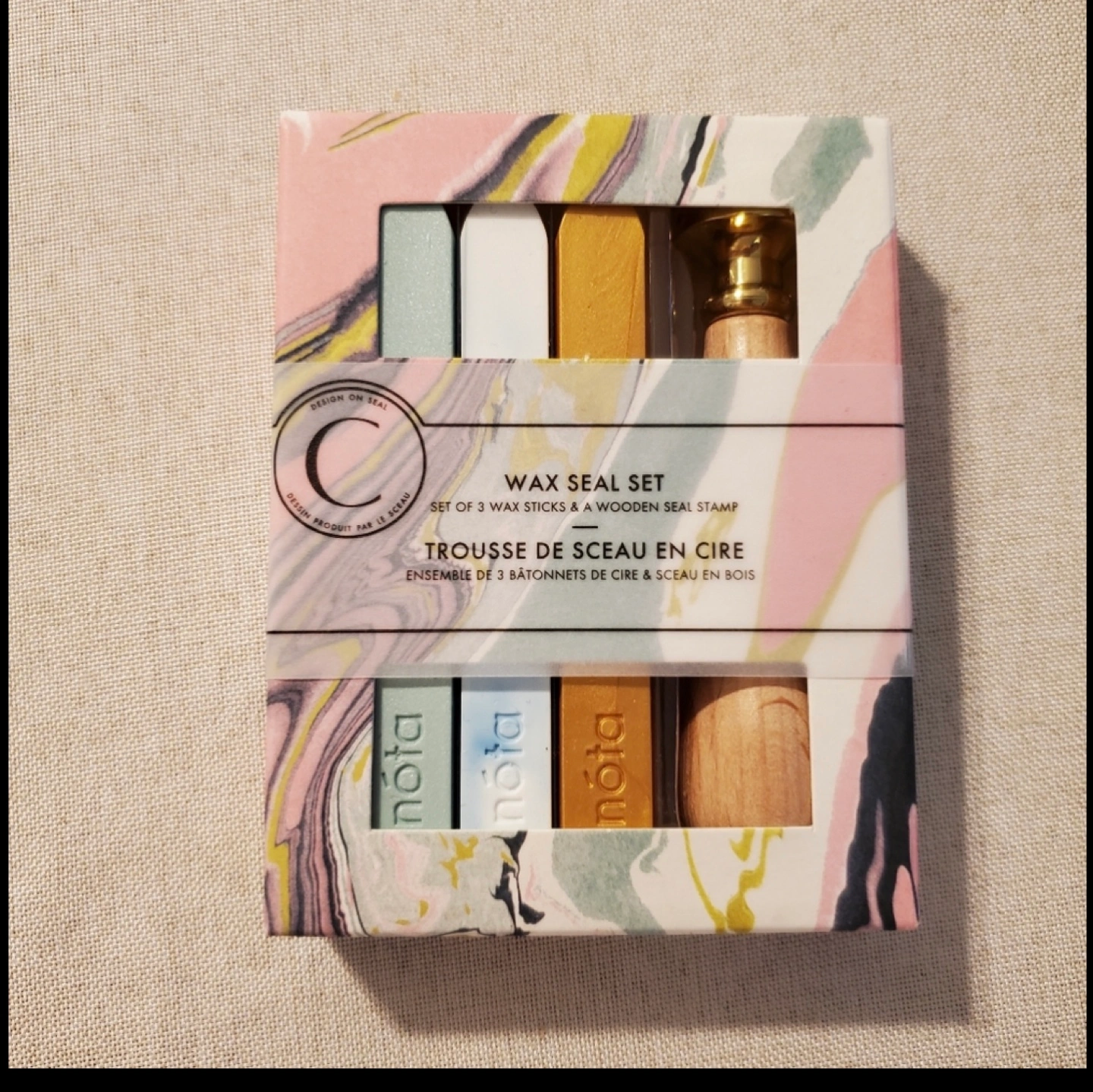 Set of 3 wax sticks and a wooden seal stamp. New, sealed with letter C Pick up: Suntea on Kingsway Royal Oak skytrain station Metrotown Mall
