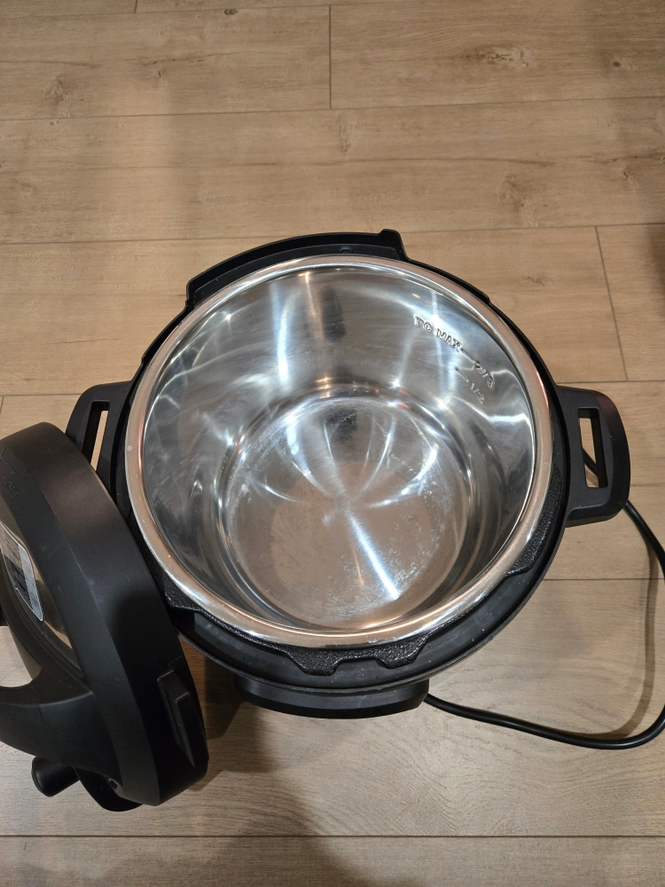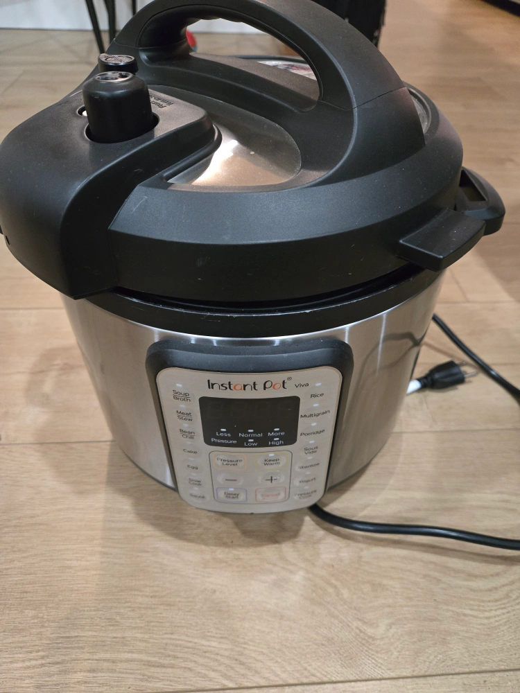 Instant Pot Viva 6 Qt electric pressure cooker. Includes inner pot, lid and power cord.