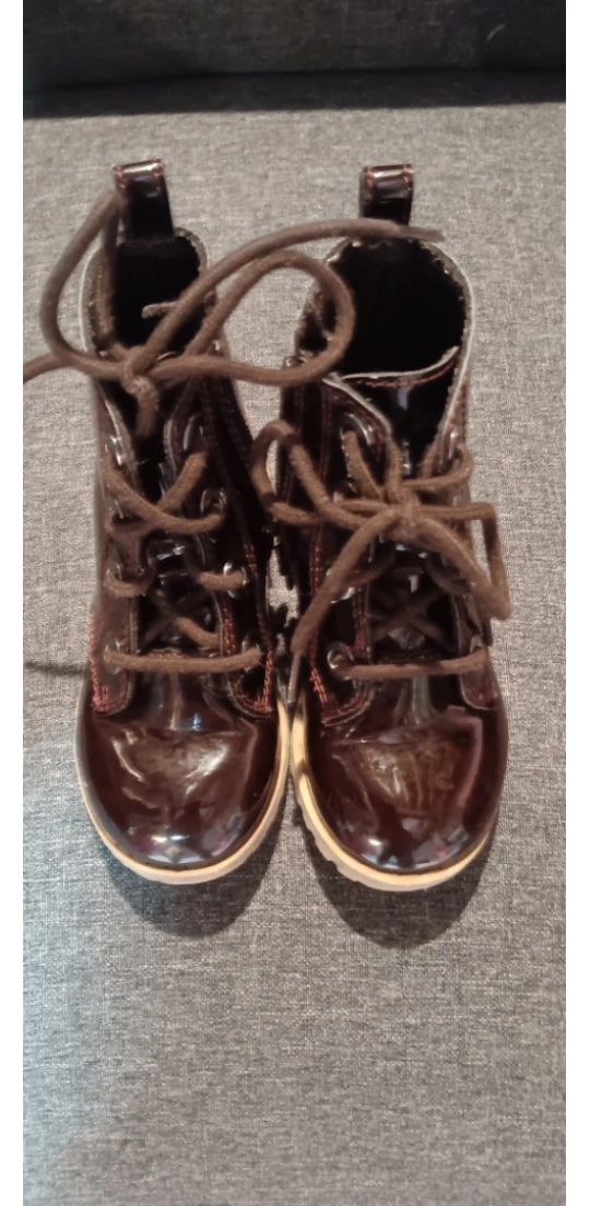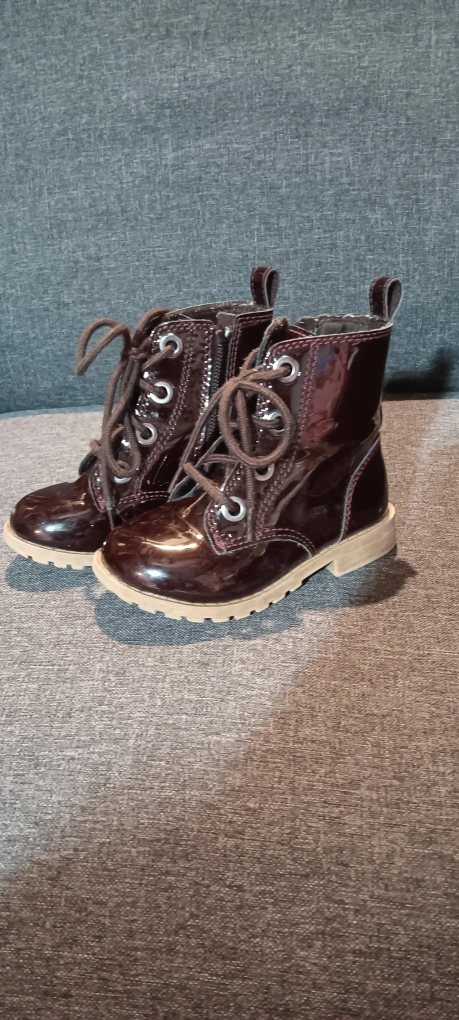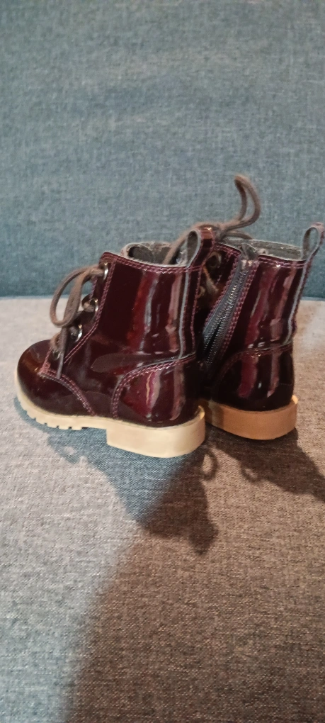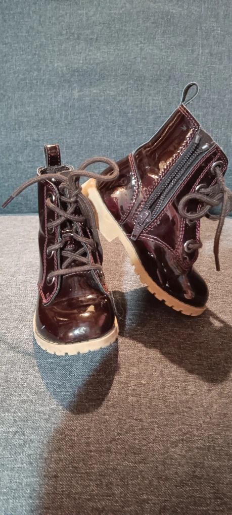 Burgundy patent leather boots with side zipper and laces. Great for fall and winter.