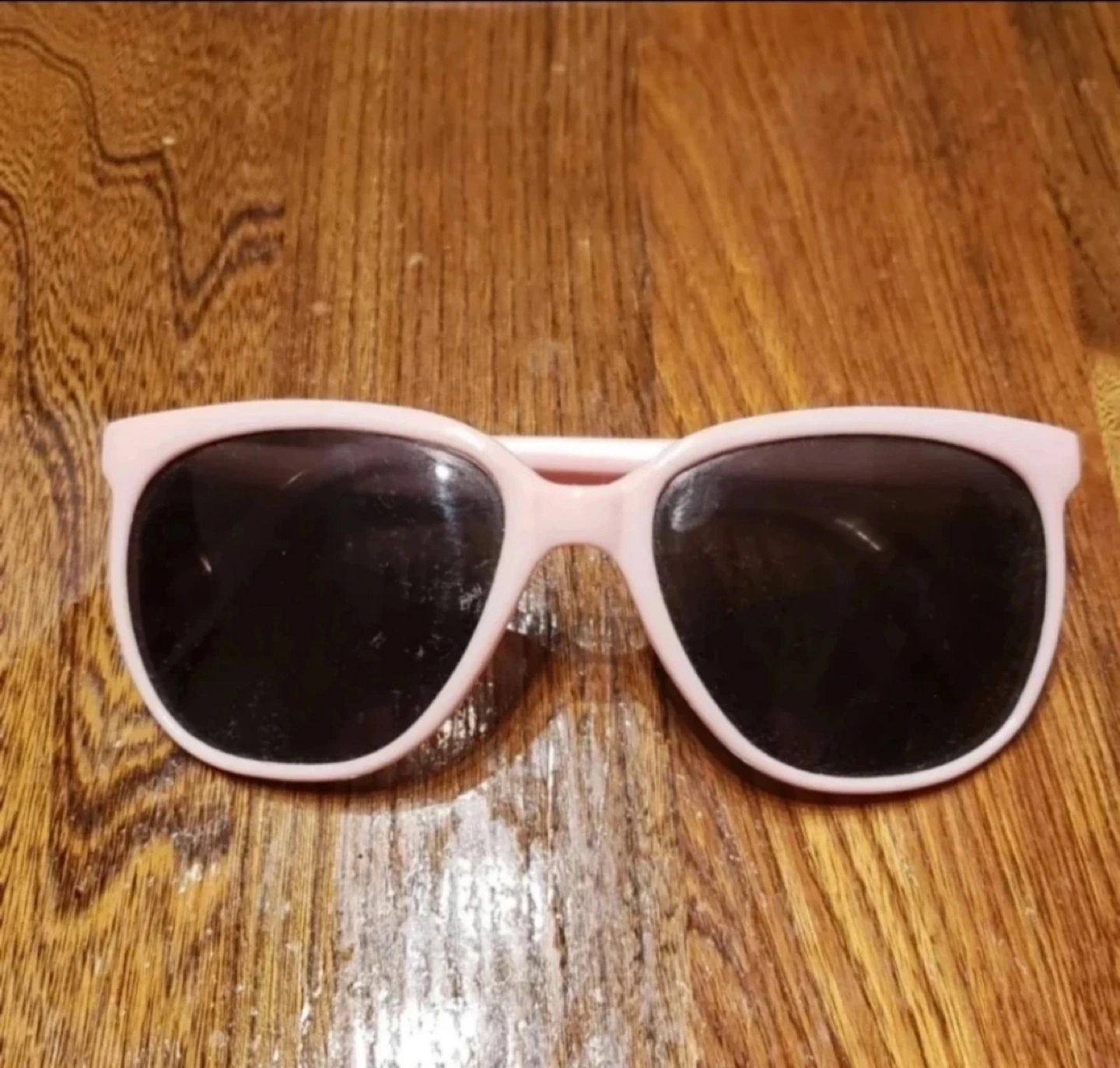 Vintage sunglasses. Pink plastic frames and dark lenses. Proof of purchase for vintage verification posted. Very small amount of lens scratching.