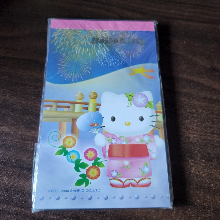 Brand new Hello Kitty from Sanrio notepad. The paler can easily tear in half according to the lines.