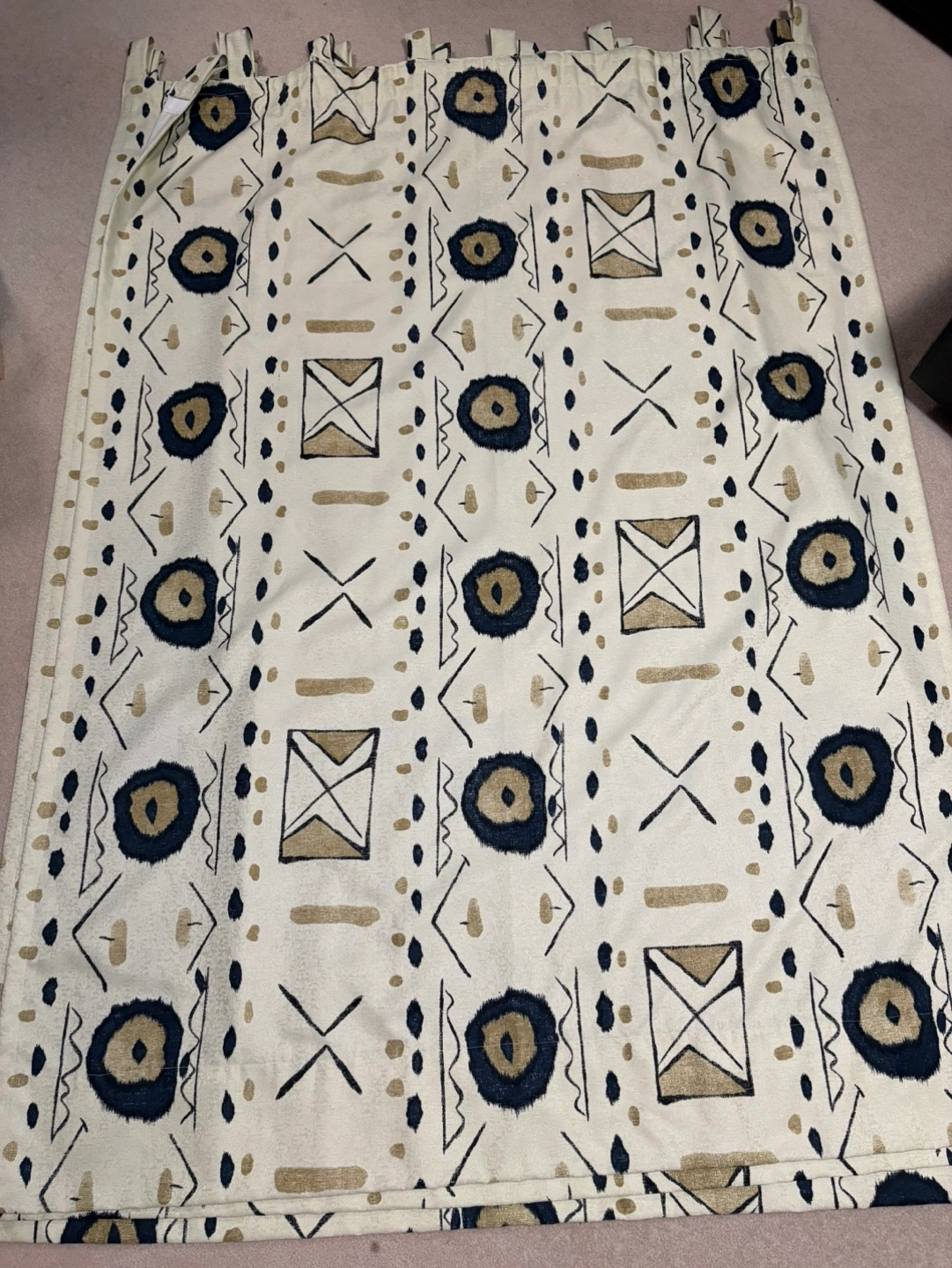 Curtains with geometric pattern , beige, black and brown pattern . Comes with a rod pocket top. $5 each or best offer for all 3 pieces Not black out kind