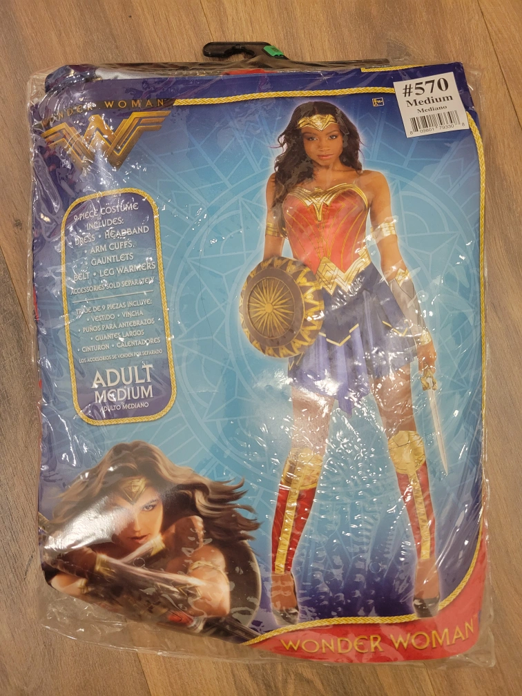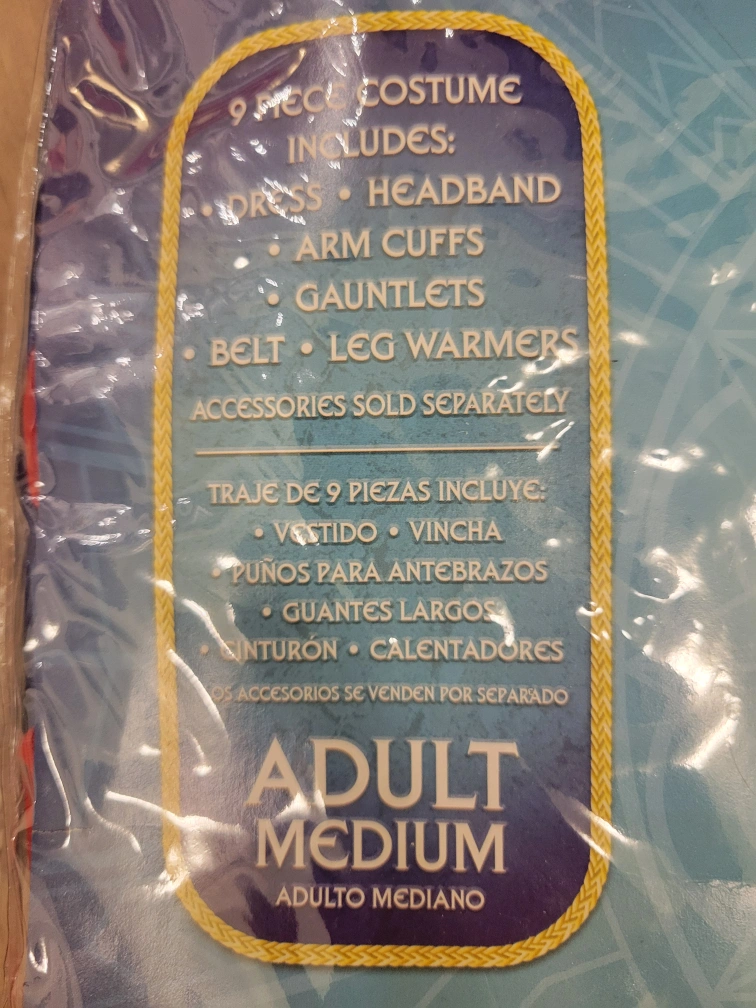 9-piece costume includes: dress, headband, arm cuffs, gauntlets, belt, leg warmers. Accessories sold separately.