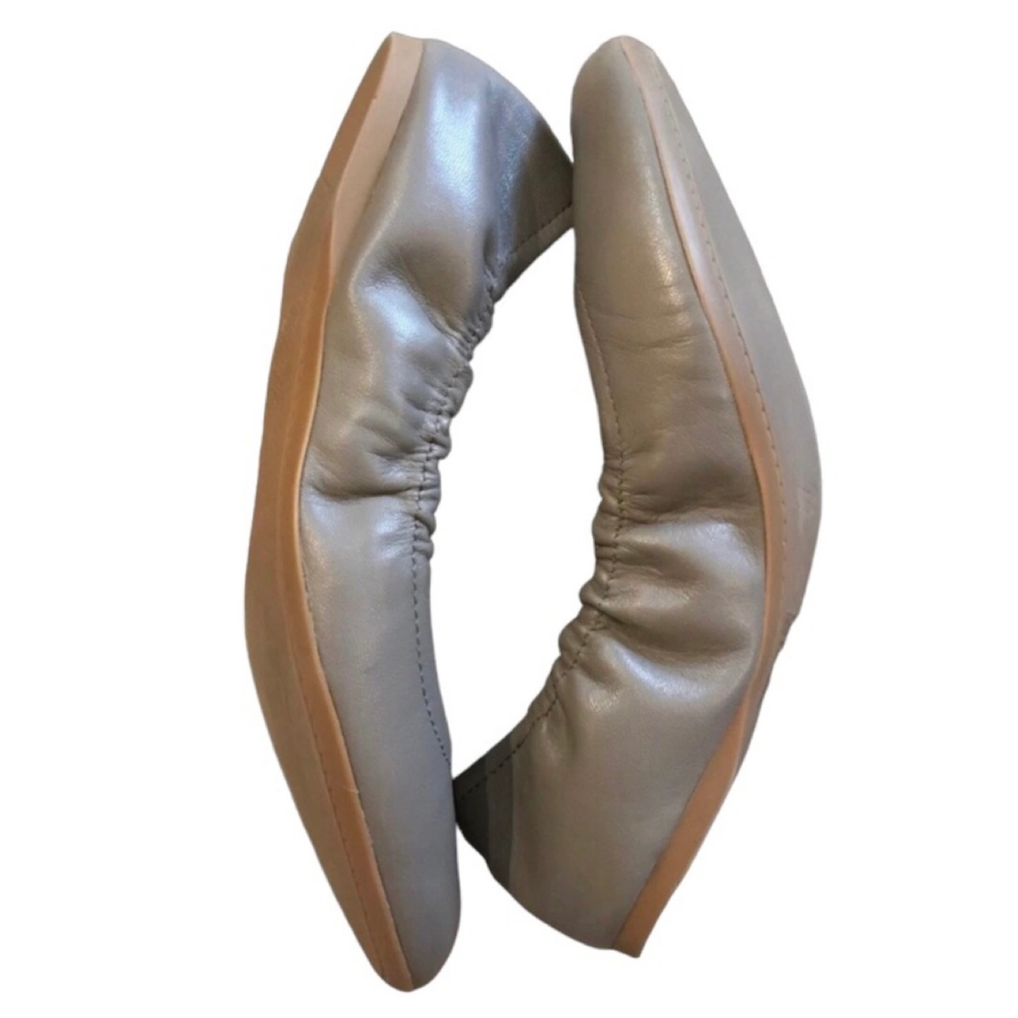 New in box. (Worn once, indoors only.) These classic flats from J. Crew are cute with a skirt or skinny jeans... Leather upper and insole, rubber sole. Elasticized sides give them a snug fit.* *Note size is 6M, but they fit on the small side. To be picked up in the Yonge & Davisville area.