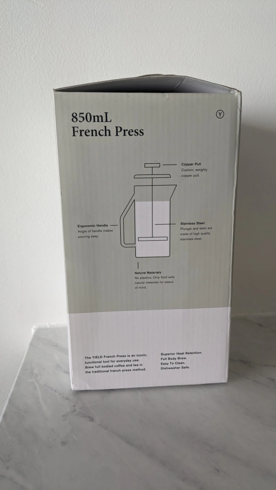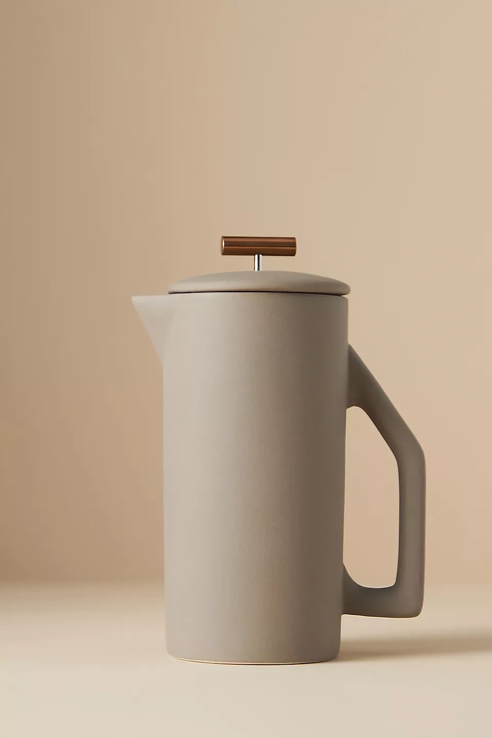 Brand New In Box - never used Brew perfect, full-bodied coffee in the traditional french press method. This heavy walled ceramic press pot is a functional and beautiful addition to your kitchen table. The ceramic body maintains a consistent temperature throughout the brewing process. High gloss finish on all interiors. Certified SGS Food Safe. Materials Fine Mesh Steel Filter Ceramic Pitcher & Lid Copper Pull Dimensions 3.5” D x 5.5” W x 7.5” H Locations: Quick easy pick up by Scarborough Town Centre most days Pick up around Union station most Tuesdays & Thursdays for smaller items I can bring with me on the train