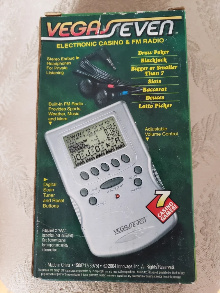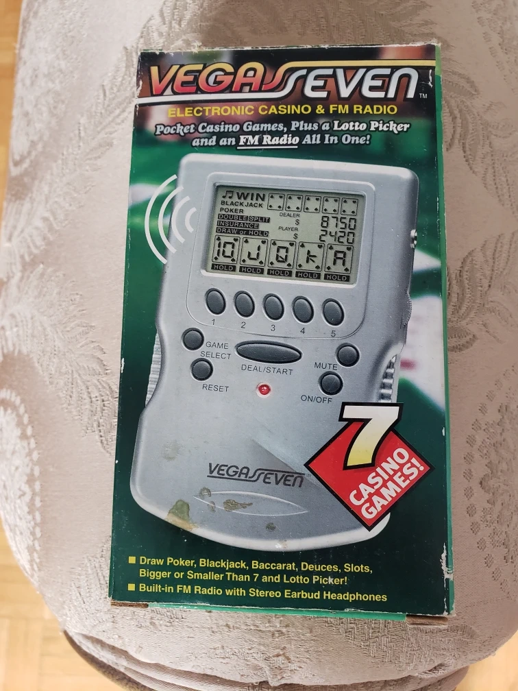 Pocket casino games, plus a lotto picker and FM radio all in one! Draw poker, blackjack, bigger or smaller than 7 and lotto picker! Built-in FM radio with stereo earbud headphones.